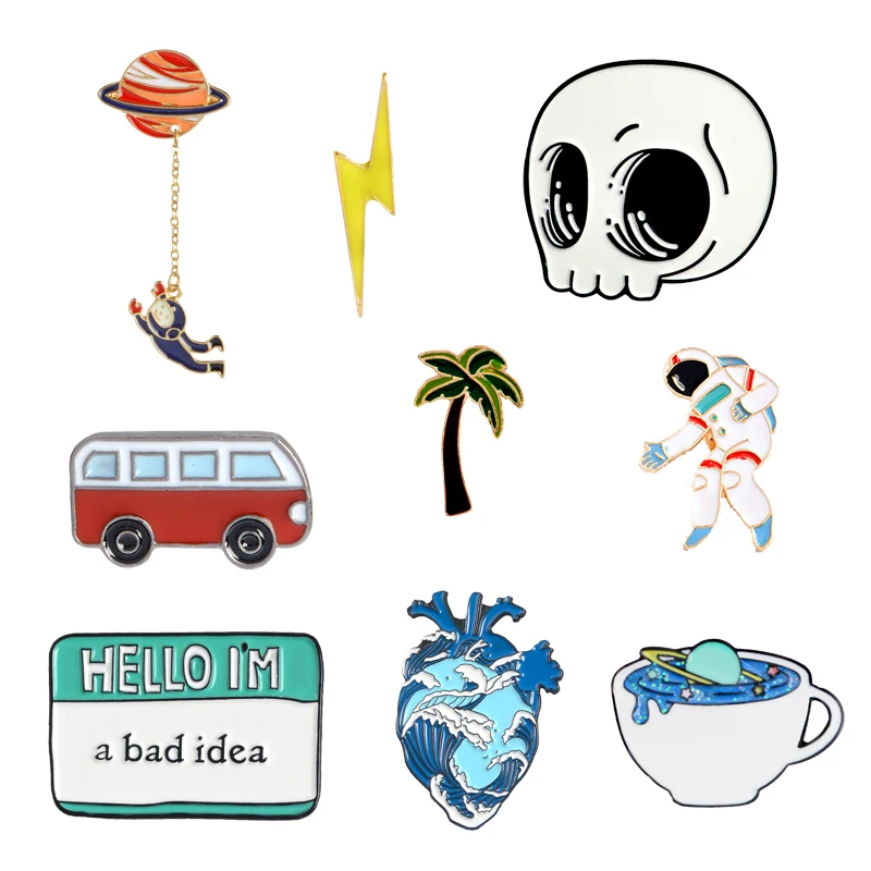 Брошь с эмалью, в форме черепа, автобуса, астронавта
