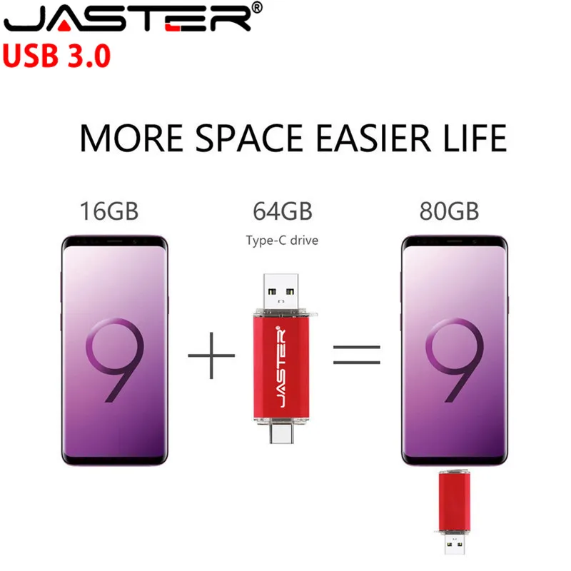 JASTER Type-C OTG флеш-накопитель USB 3,0, 64 ГБ, 32 ГБ, 16 ГБ, флеш-накопитель, память для смартфона, мини USB флешка Type-C, 3,1, двойная вилка