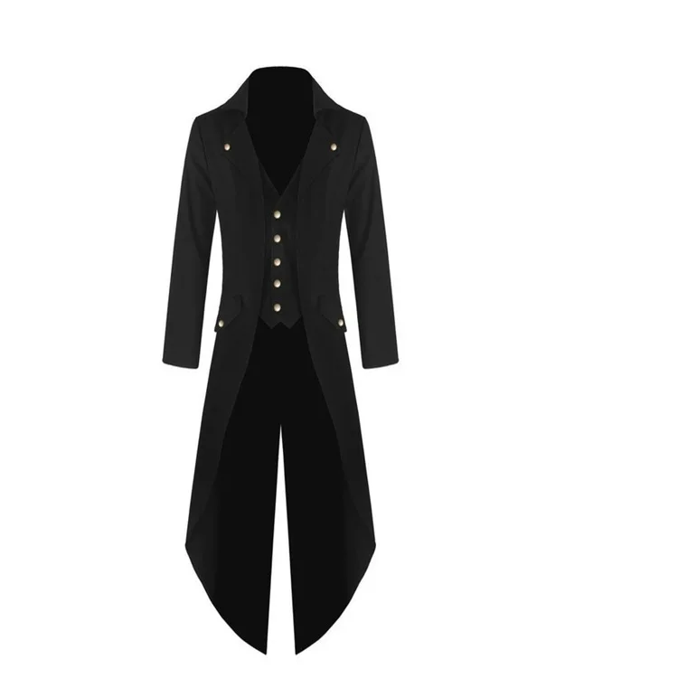 Костюм в викторианском стиле для мужчин и взрослых, черное пальто-п...