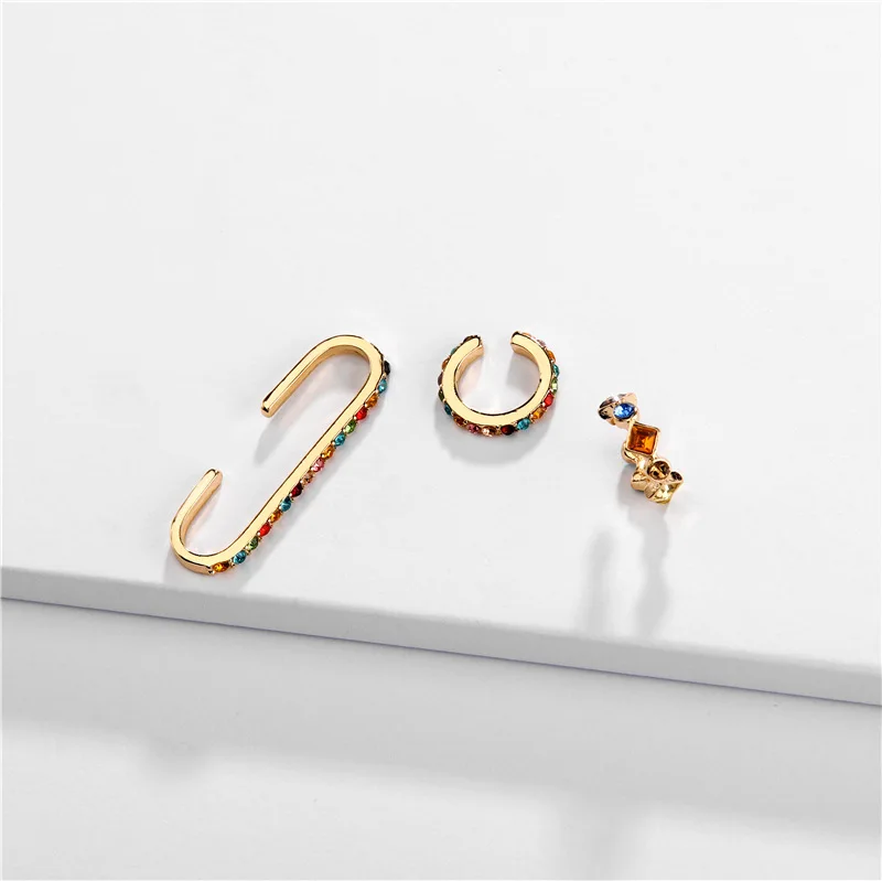Женские серьги Радуга из кубического циркония, каффы для женщин, модные золотые серьги-клипсы Huggie, каффы, ювелирные изделия с кристаллами