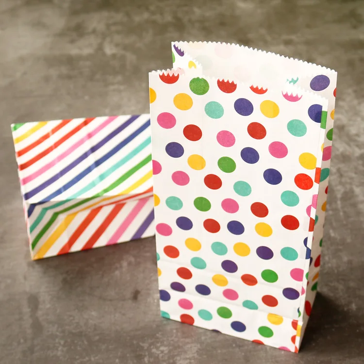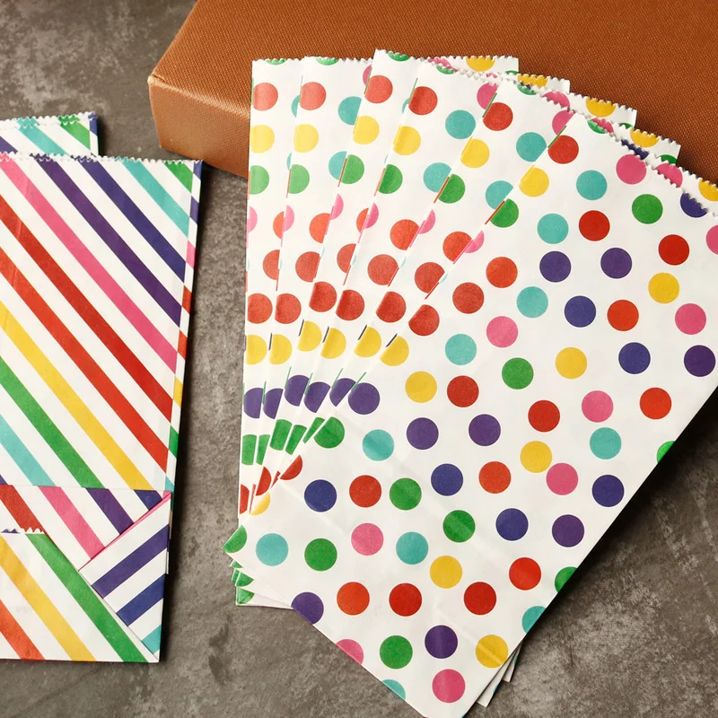 50 шт. цветной бумажный пакет в горошек, Подарочный пакет в полоску, сумка для Конфета Попкорн с открытым верхом, товары для дней рождения, Подарочные Упаковочные пакеты