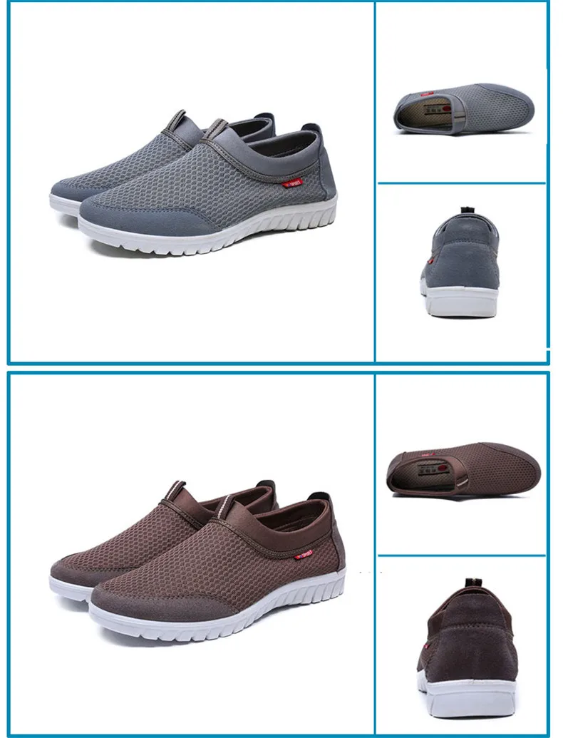 Мужские кроссовки с дышащей сеткой, черные Повседневные слипоны, лоферы для прогулок, размеры 38-48, для лета, 2019