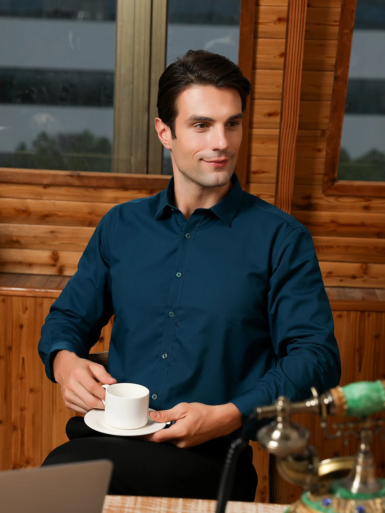 Мужская Однотонная рубашка из бамбукового волокна, эластичная Удобная рубашка с длинным рукавом, легкая в уходе формальная Мужская классическая рубашка, мужские топы размером 5xl