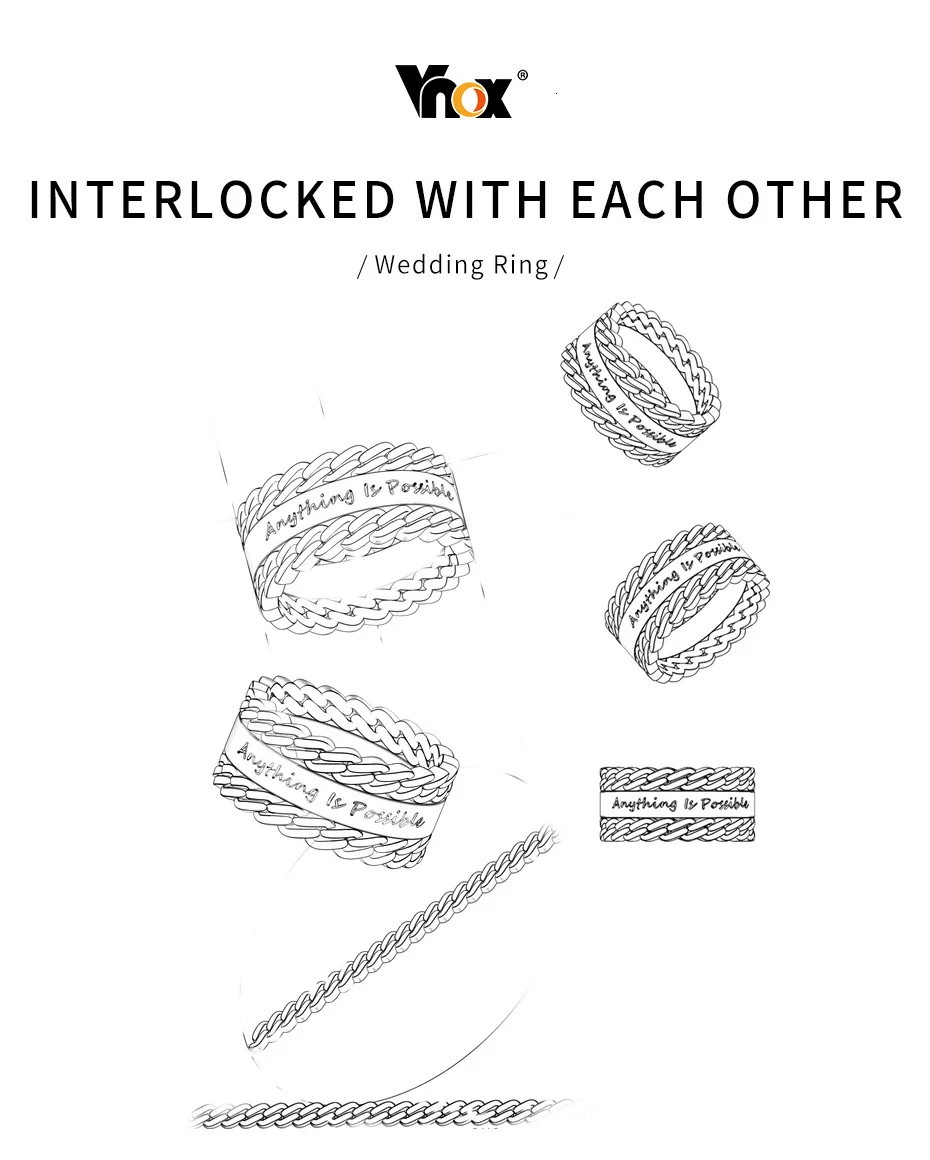 Обручальное кольцо Vnox из нержавеющей стали для мужчин и женщин, о...