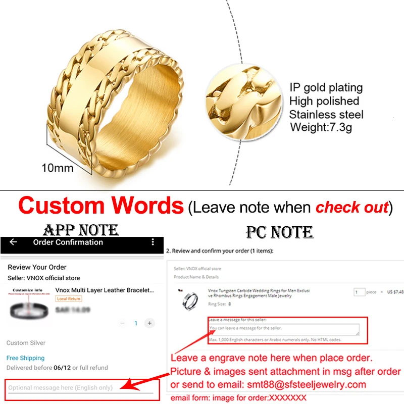 Vnox Бесплатная Настройка имени кольца для мужчин и женщин 6 мм из ...