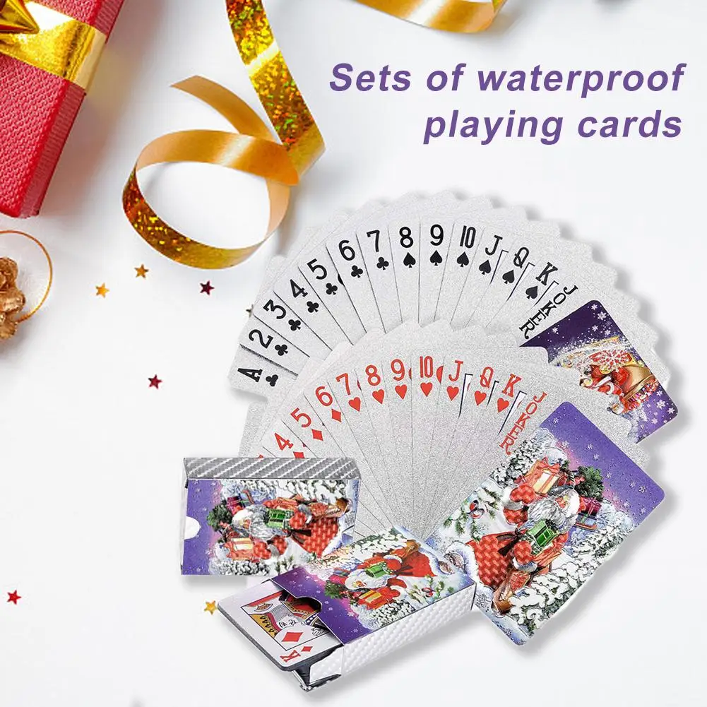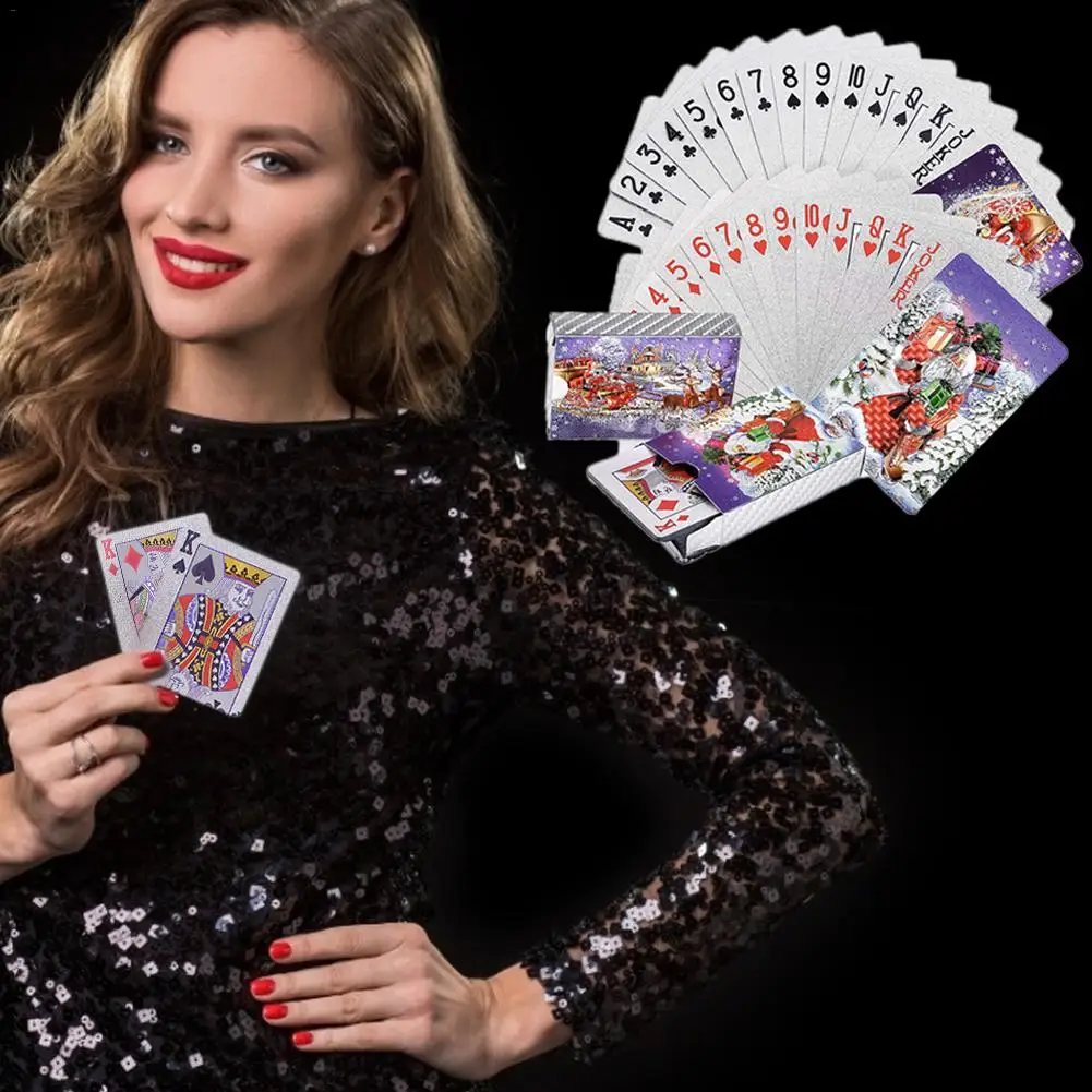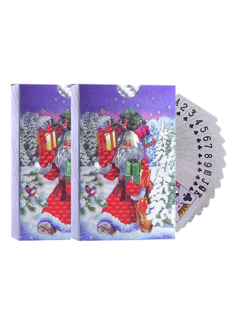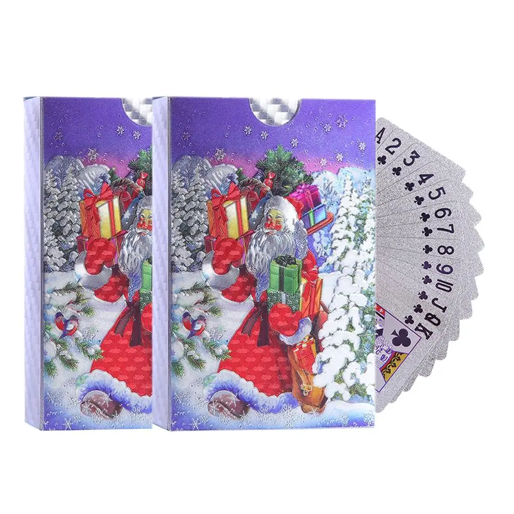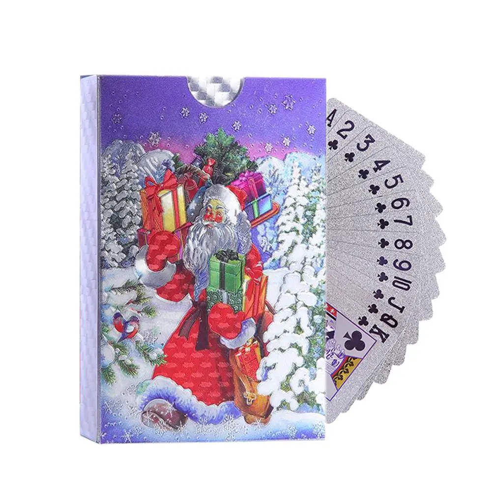 ПВХ Рождественский узор пластиковая Водонепроницаемая серебряная фольга для взрослых игральные карты для игры в покер фотореквизит для Волшебных Игр