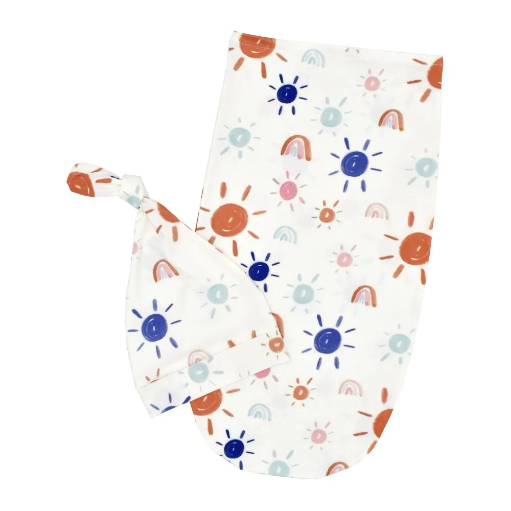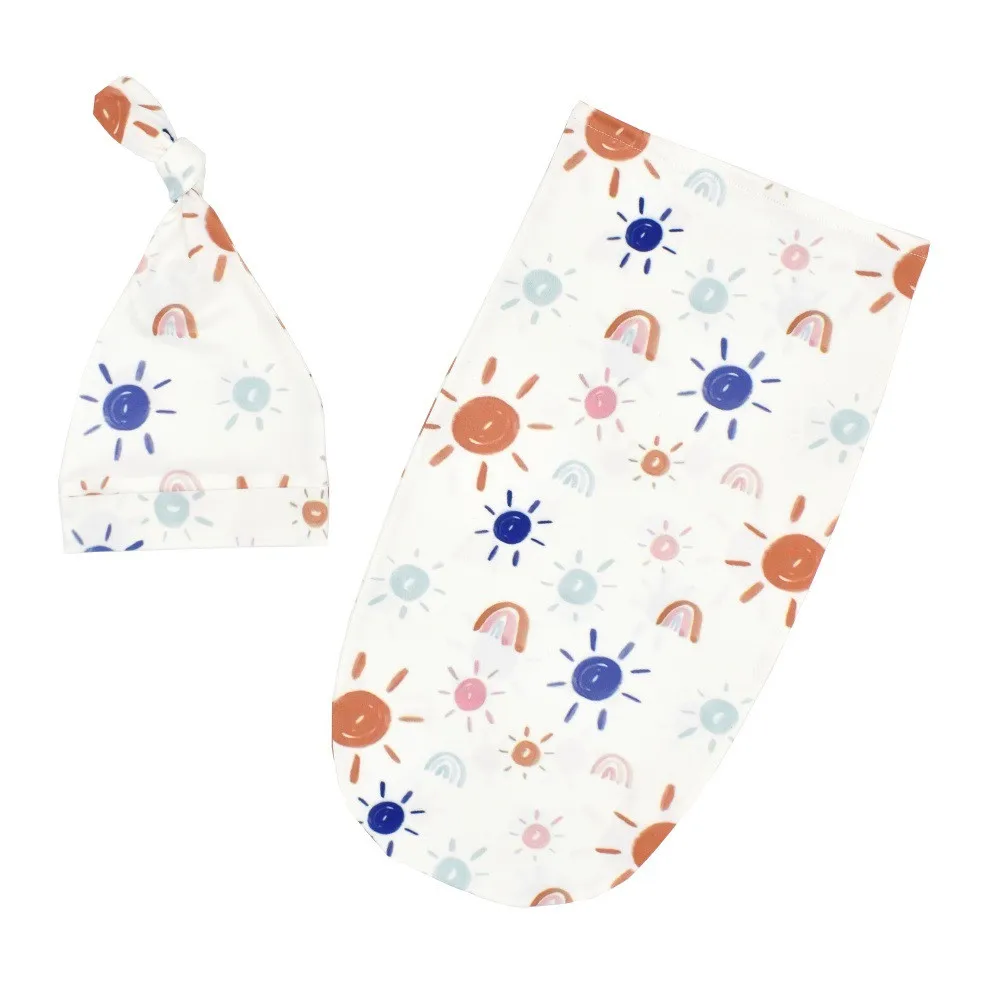Пеленка для новорожденных Ylsteed с подходящим верхом и узелком, Детские спальные мешки, кокон с цветочным принтом, реквизит для фотосъемки новорожденных, пеленальный мешочек