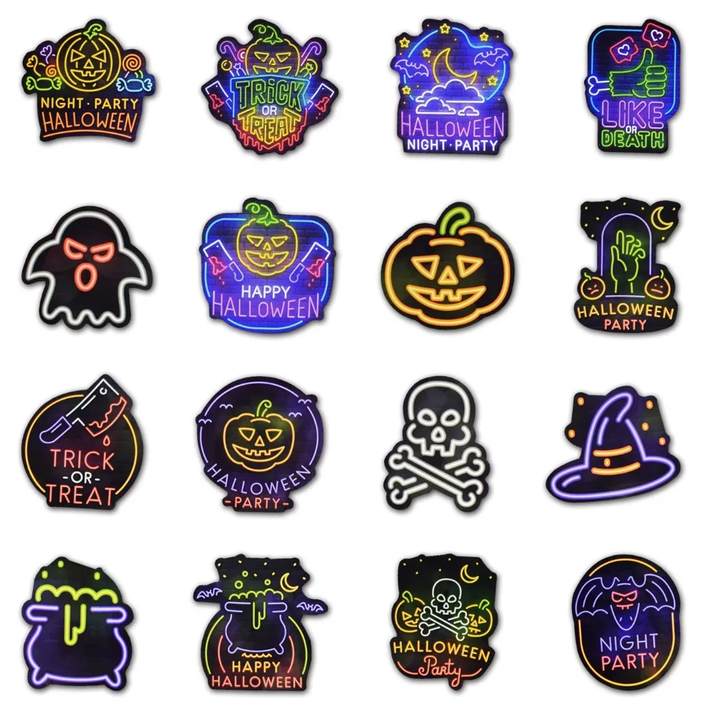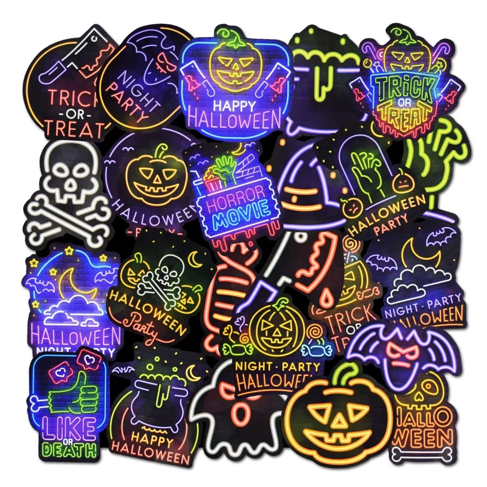 25 шт. неоновые наклейки на Хэллоуин для ноутбука, скейтборда, багажной тележки, велосипедного бампера, Детские Виниловые украшения, крутая наклейка