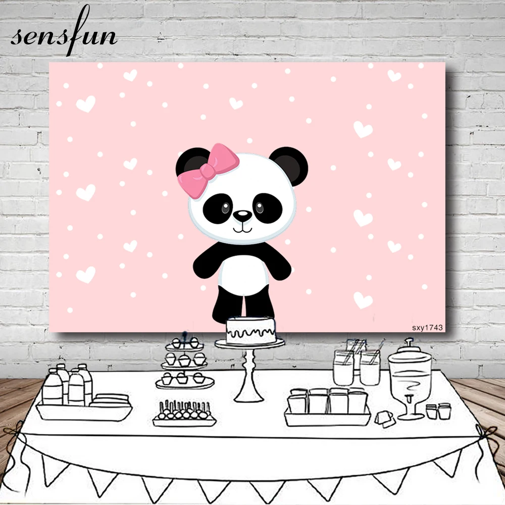 Виниловый фон для фотосъемки в горошек с изображением розовой панды, 7x5 футов