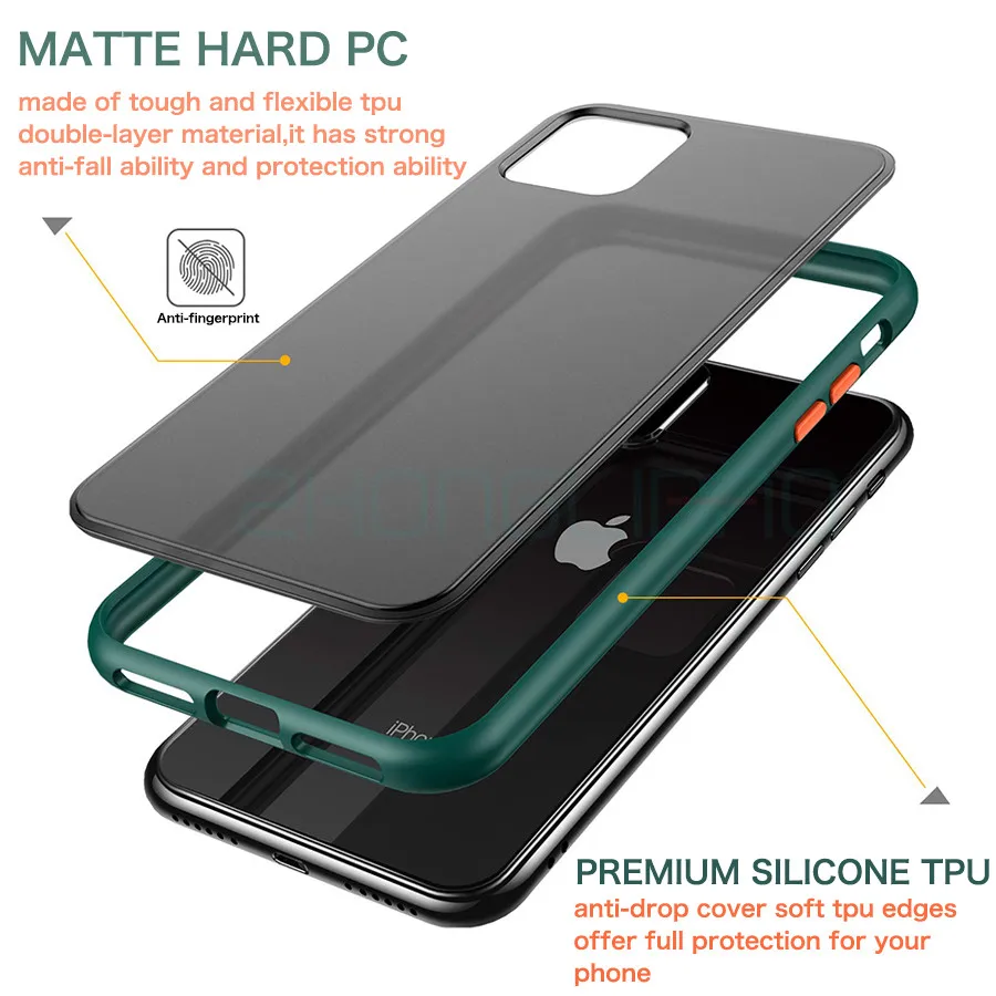 Модный противоударный чехол для IPhone 11 Pro Xs Max Xr 8 7 6 Plus, противоударный защитный прозрачный матовый Жесткий Чехол-бампер из поликарбоната и ТПУ