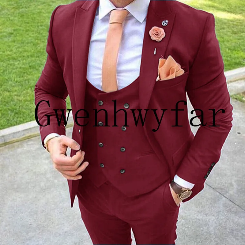 Мужской приталенный пиджак gwinhwyfar, темно-бордовый пиджак + брюки + жилет, костюм из трех предметов для выпускного вечера, 2019