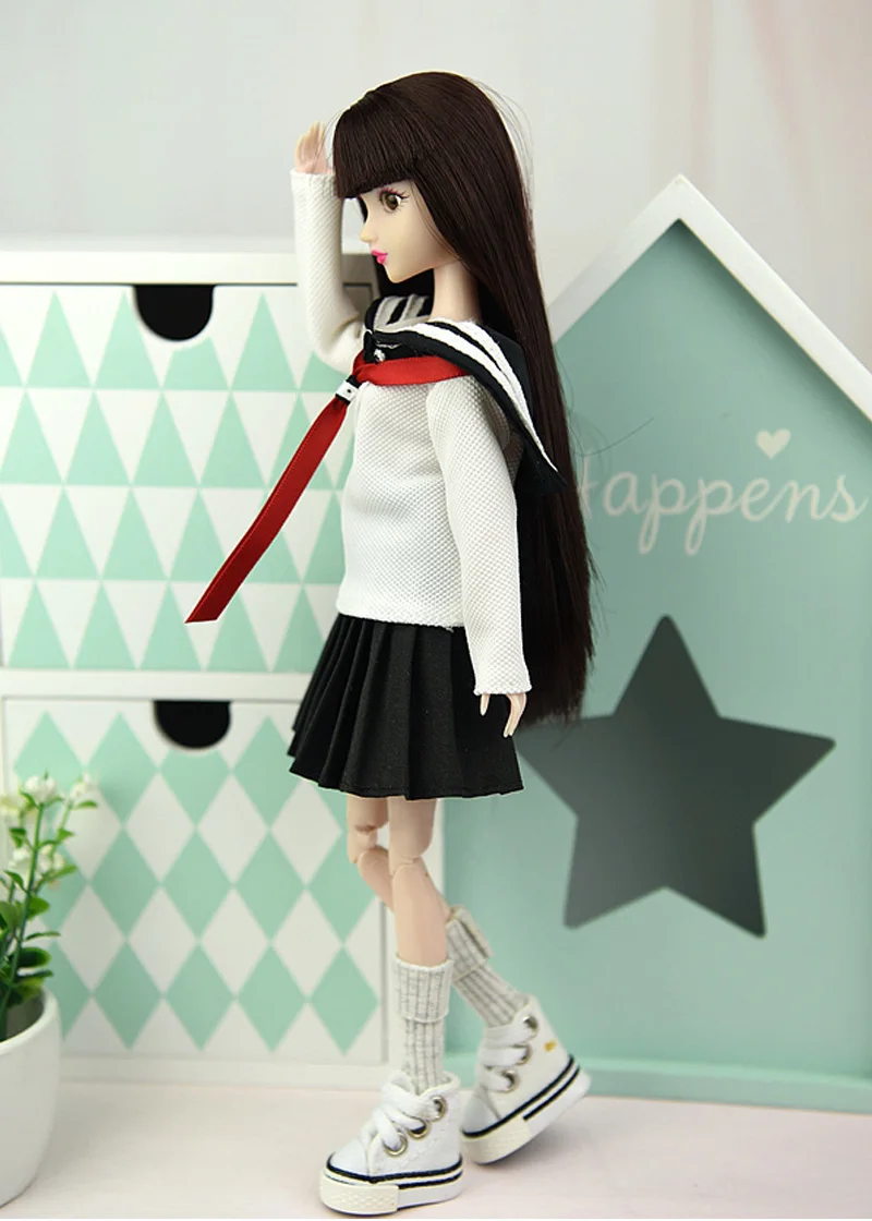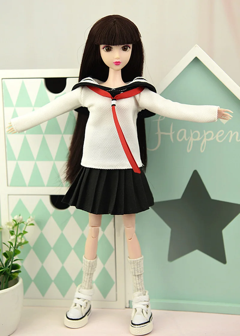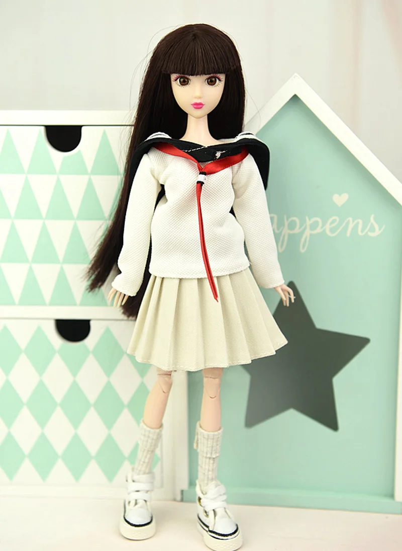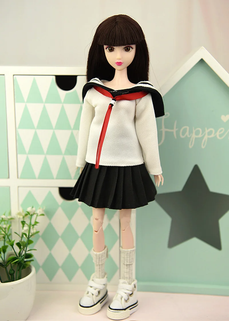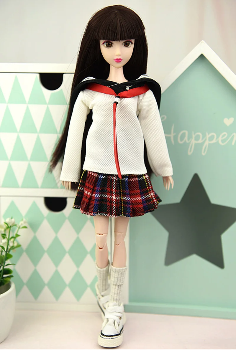 Аксессуары для кукол 16, модная одежда для кукол Барби одежда футболка, плиссированная юбка, костюм для студентов, кукольный домик Барби