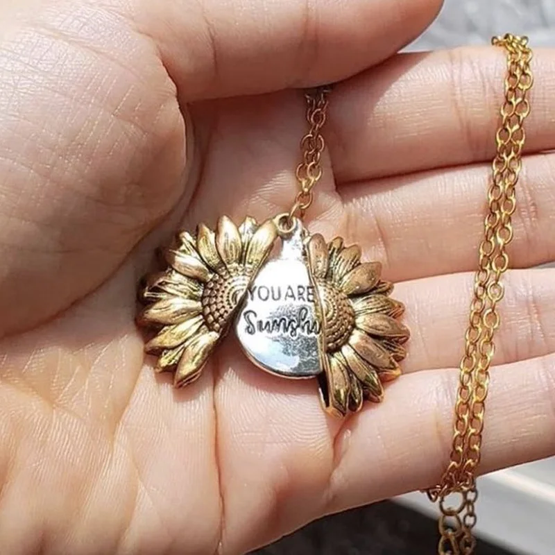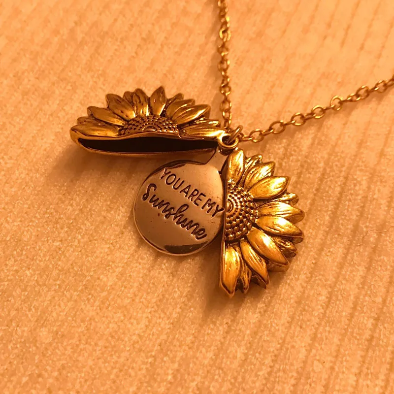 Винтажные двухсторонние ожерелья You are my Sunshine для женщин, открытый медальон, золотые ожерелья ожерелье из подсолнечника пробы, 2019