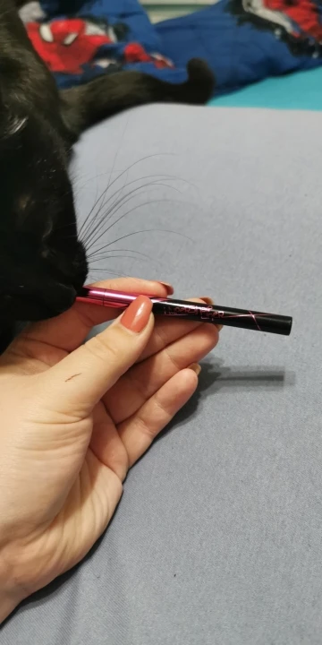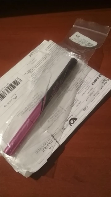 Пришло ровно за месяц. Нормально наносится через раз, кончик постоянно сохнет из-за этого стрелка не равномерная, а как будто плешивая. С далека это всё дело выглядит нормально, можно пользоваться в случае, если основная подводка умерла.