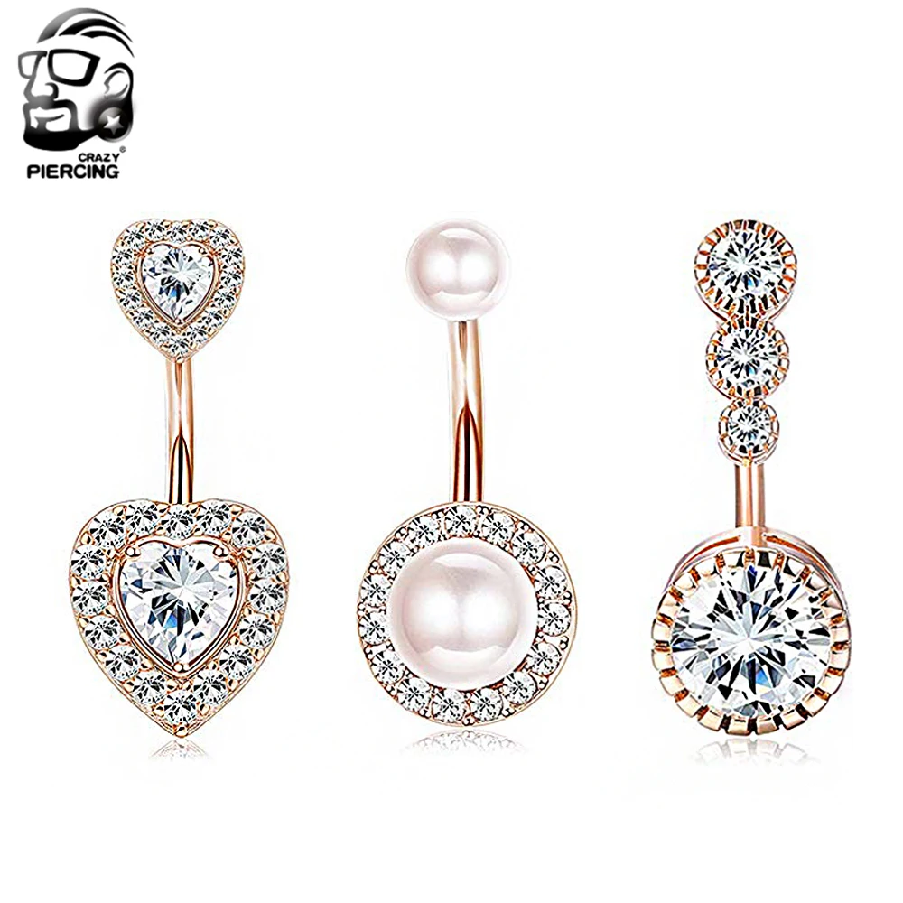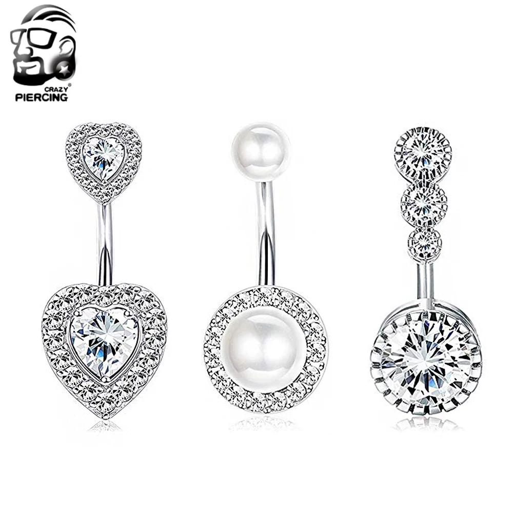Пикантные кольца для пупка с жемчугом и кристаллами, стержни из хирургической стали, 14 г, милые ювелирные изделия для женщин, сердце для пупка