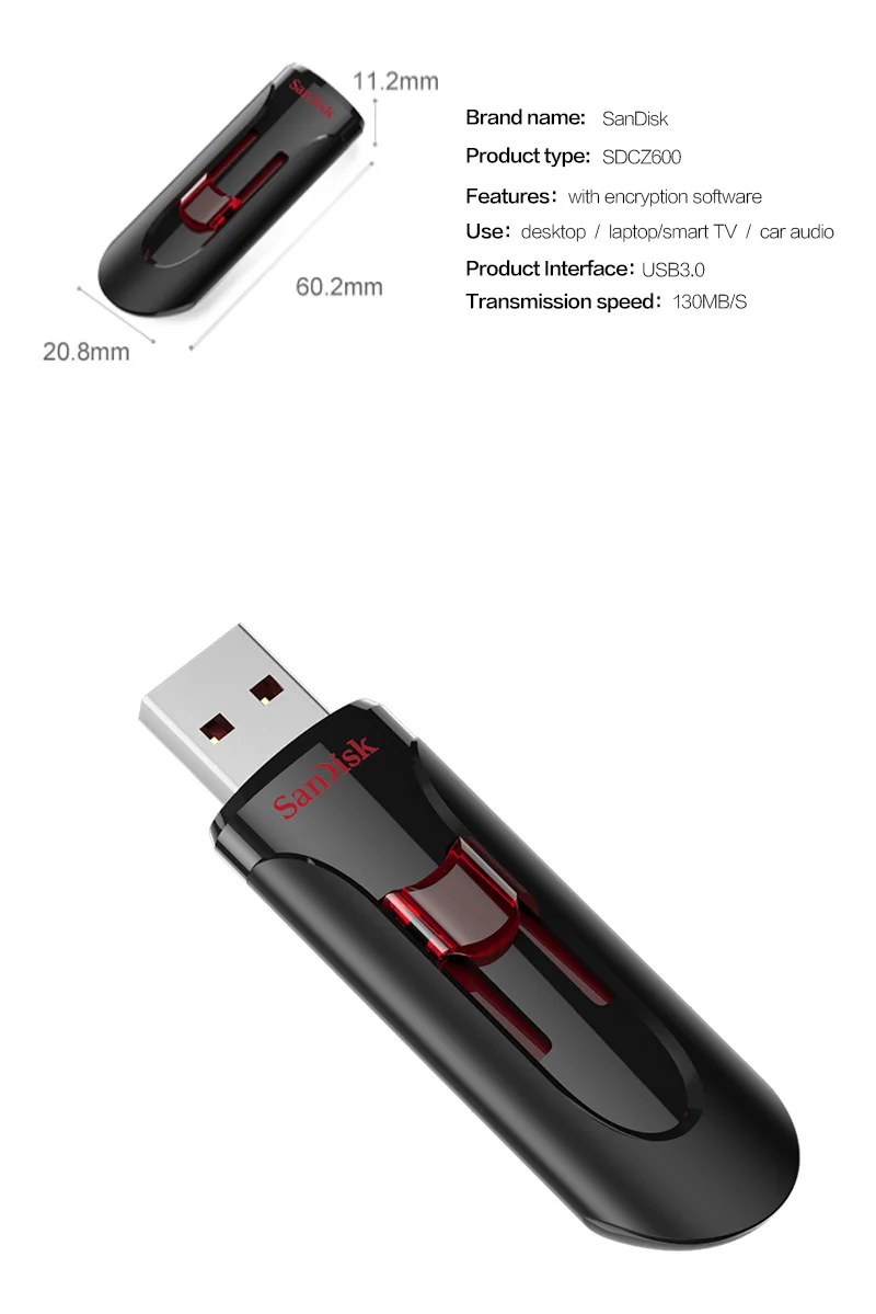 USB флеш-накопитель SanDisk CZ600, флешка USB 3,0 на 16 ГБ, 32 ГБ, 128 ГБ, 256 ГБ, флешка USB на 130 Мб