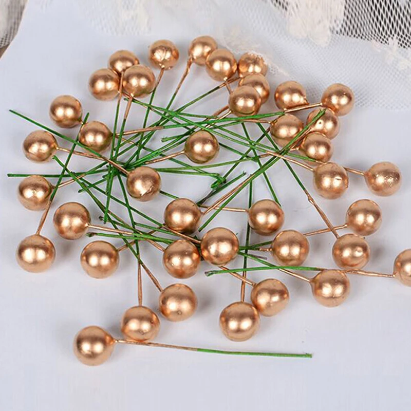 100 шт маленький искусственный цветок с имитацией стебля граната, фруктов, ягод, красного цвета, Рождественская вишня, свадебные украшения