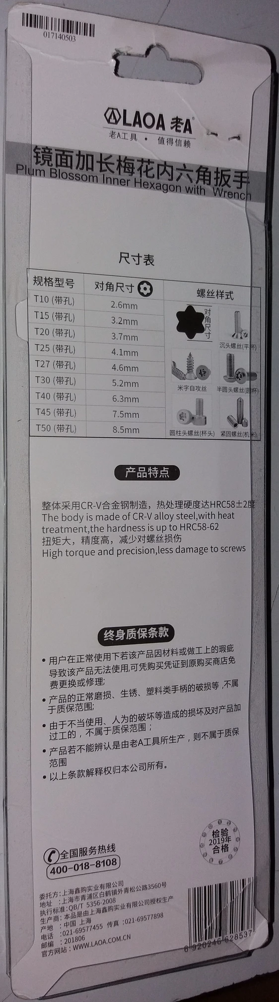 Внутренний шлицевой ключ LAOA, шестигранный ключ со средним отверстием, Torx, ручной инструмент, Звездный ключ