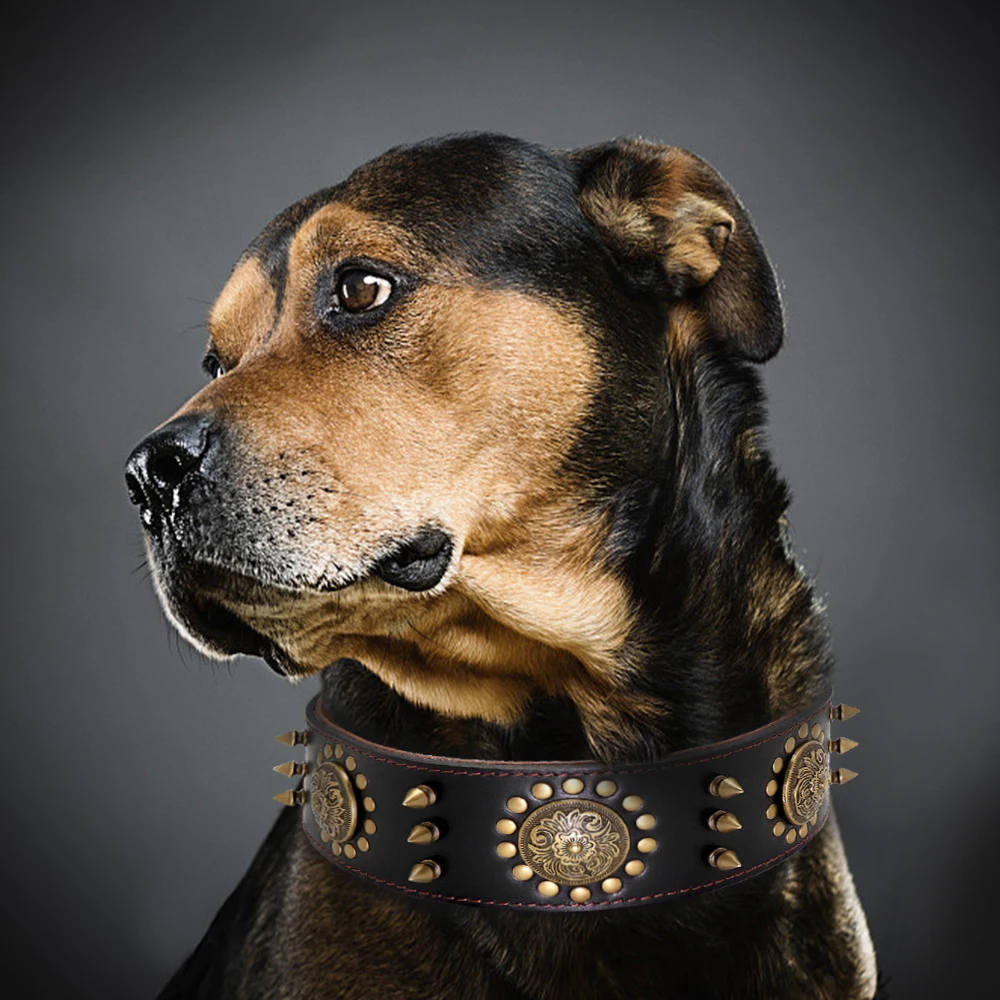 Кожаный ошейник с шипами для питомцев средних и больших собак, прочный коричневый ошейник из натуральной кожи