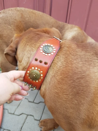 Ein wunderschönes Halsband und entspricht zum Teil der Beschreibung. Ist leider kein echtes Leder auch wenn es so beschrieben wird, Trotzdem ist es für dieses Material gut.