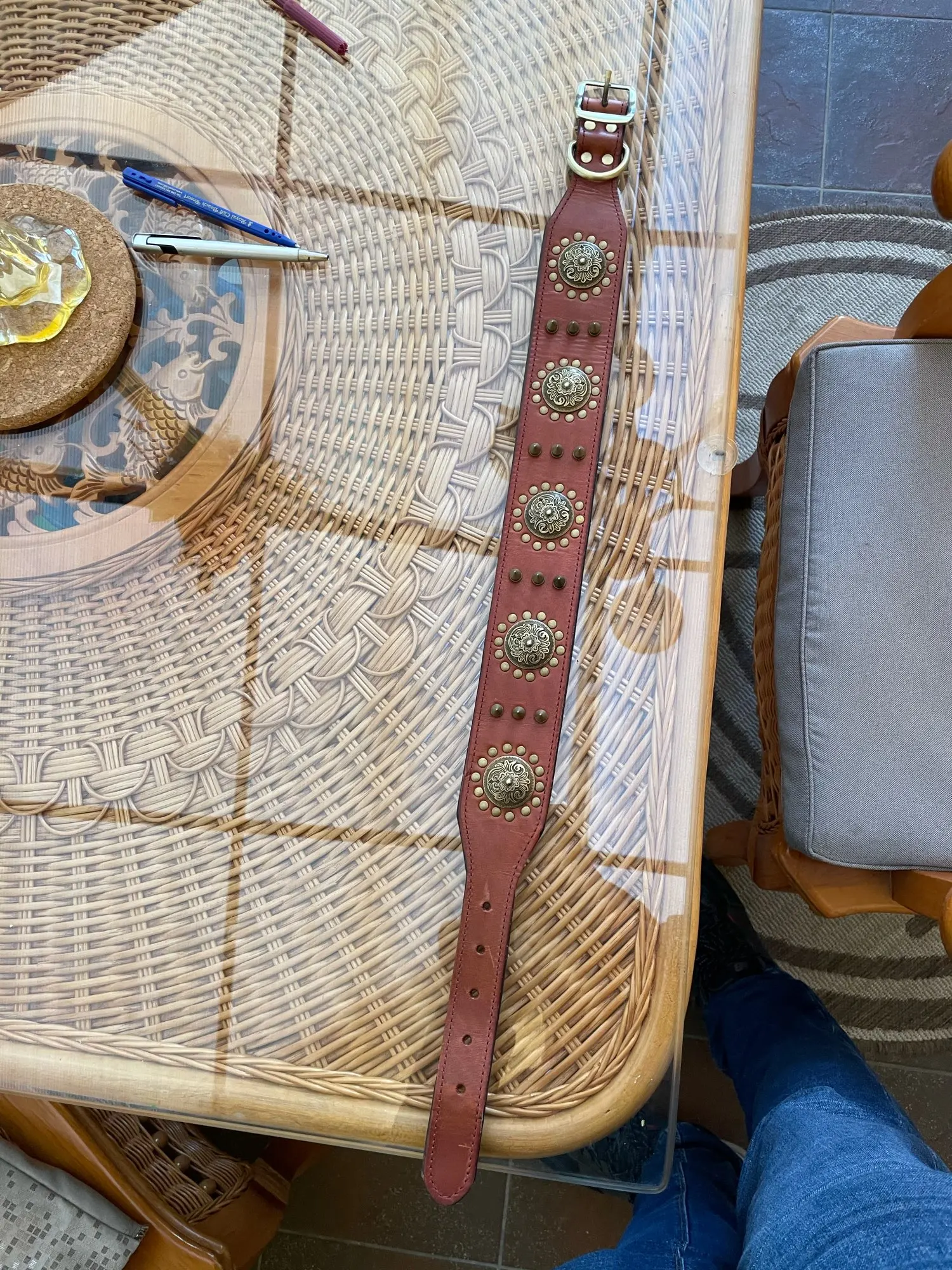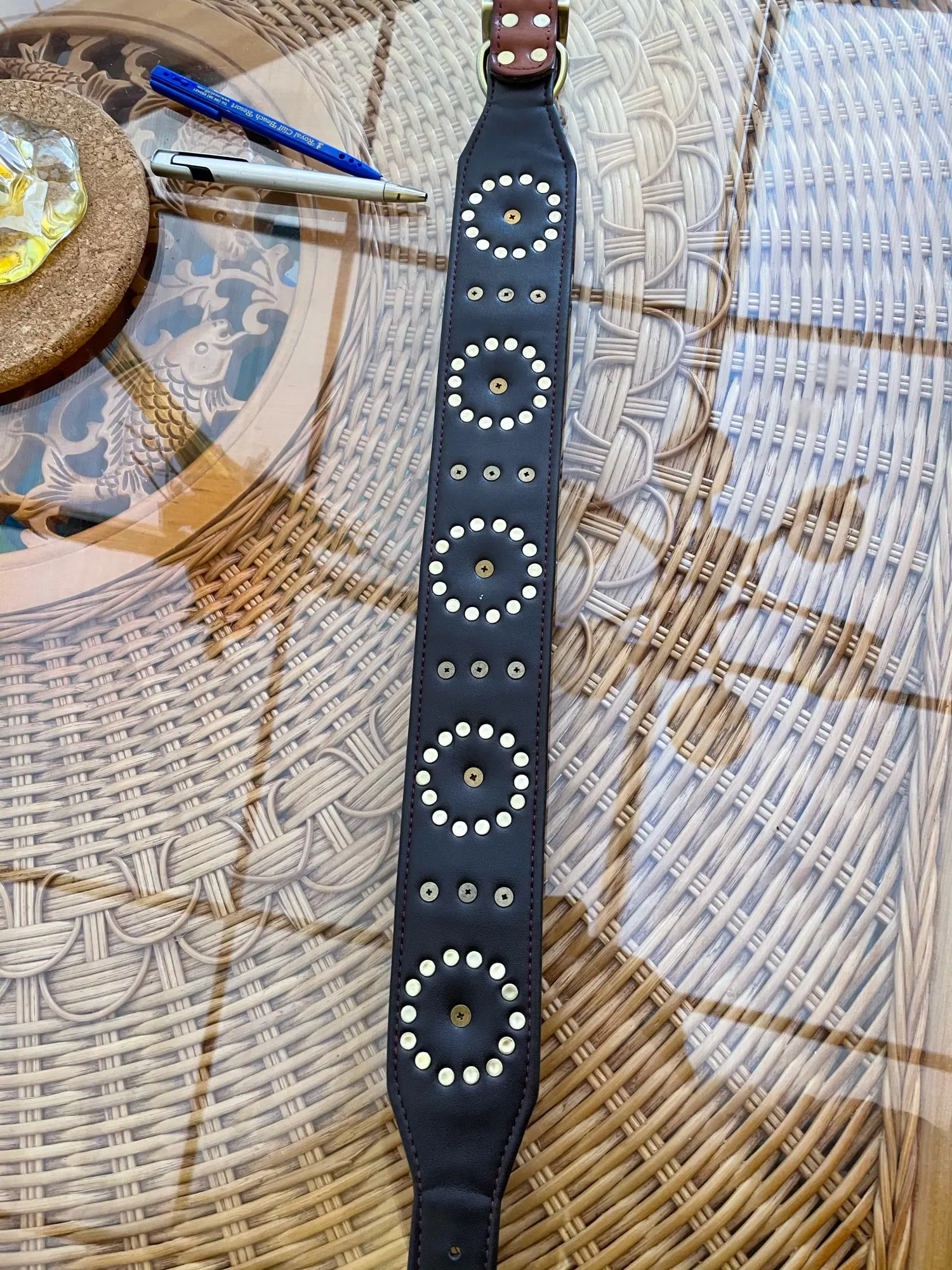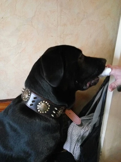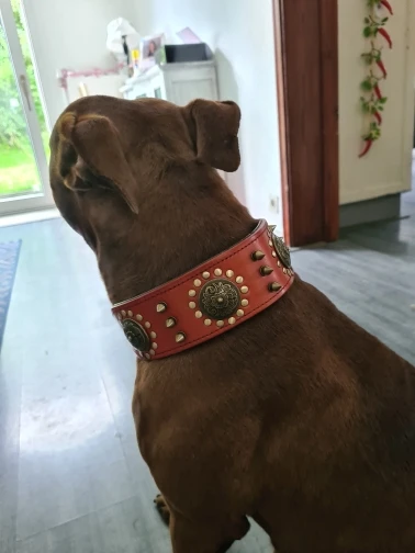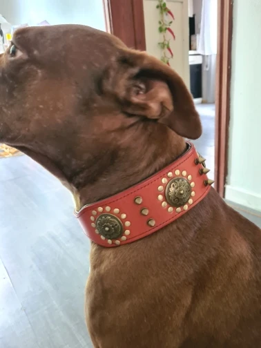 Очень красивое ожерелье, посмотрим, как оно продлится со временем. К минусам меня удивит, что это настоящая кожа, как уже упоминалось. Я взял размер L и идеально подходит для моего 2-летнего доберманна.