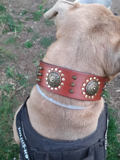 Идеально это действительно красиво и крепко, я использую его для эстетики только из-за страха от того, что он сломан, это действительно кожа jadore, но я возьму черный в следующий раз. Я возьму XL при следующем заказе, потому что этот L действительно подходит для американского Булли.