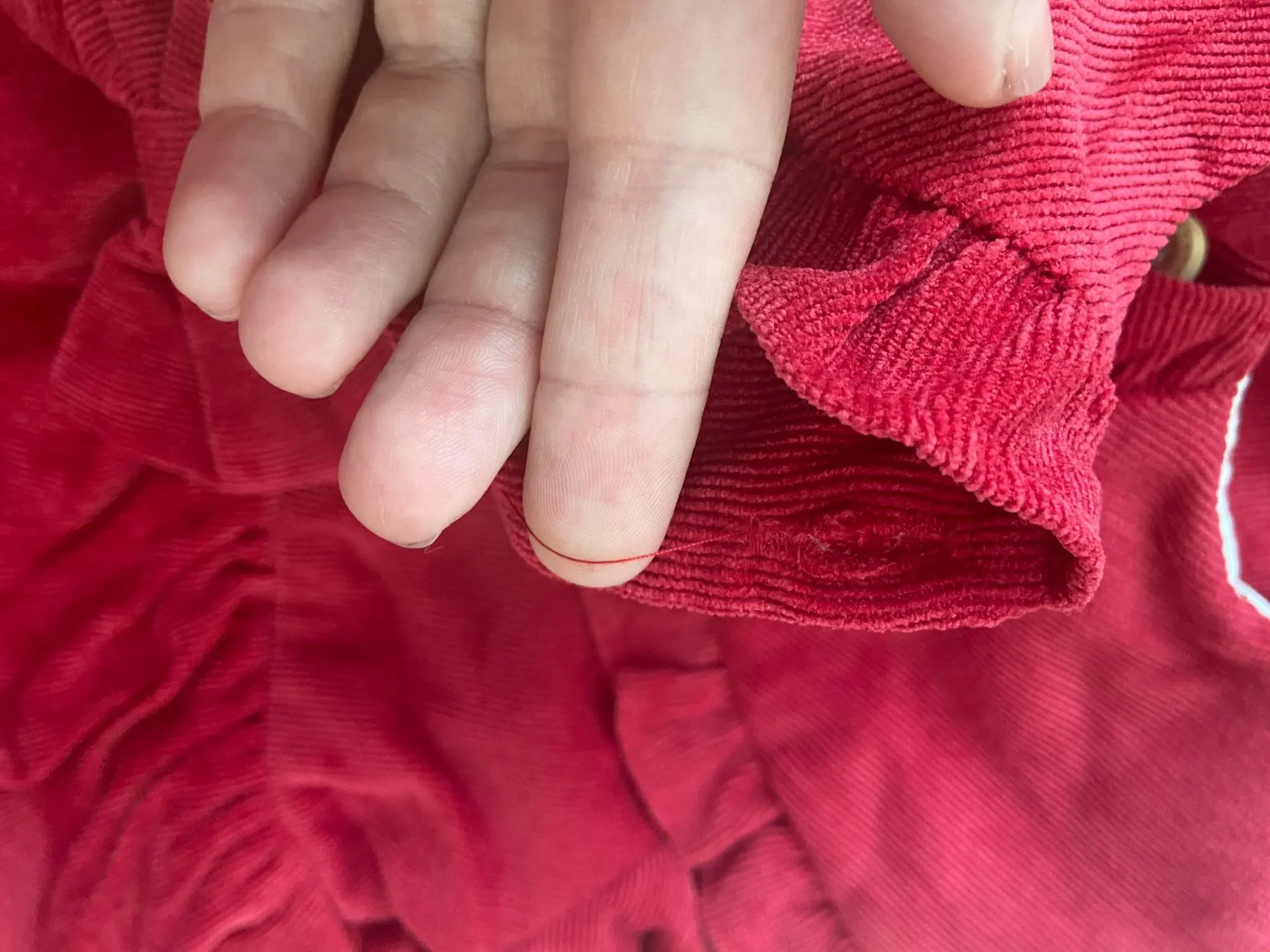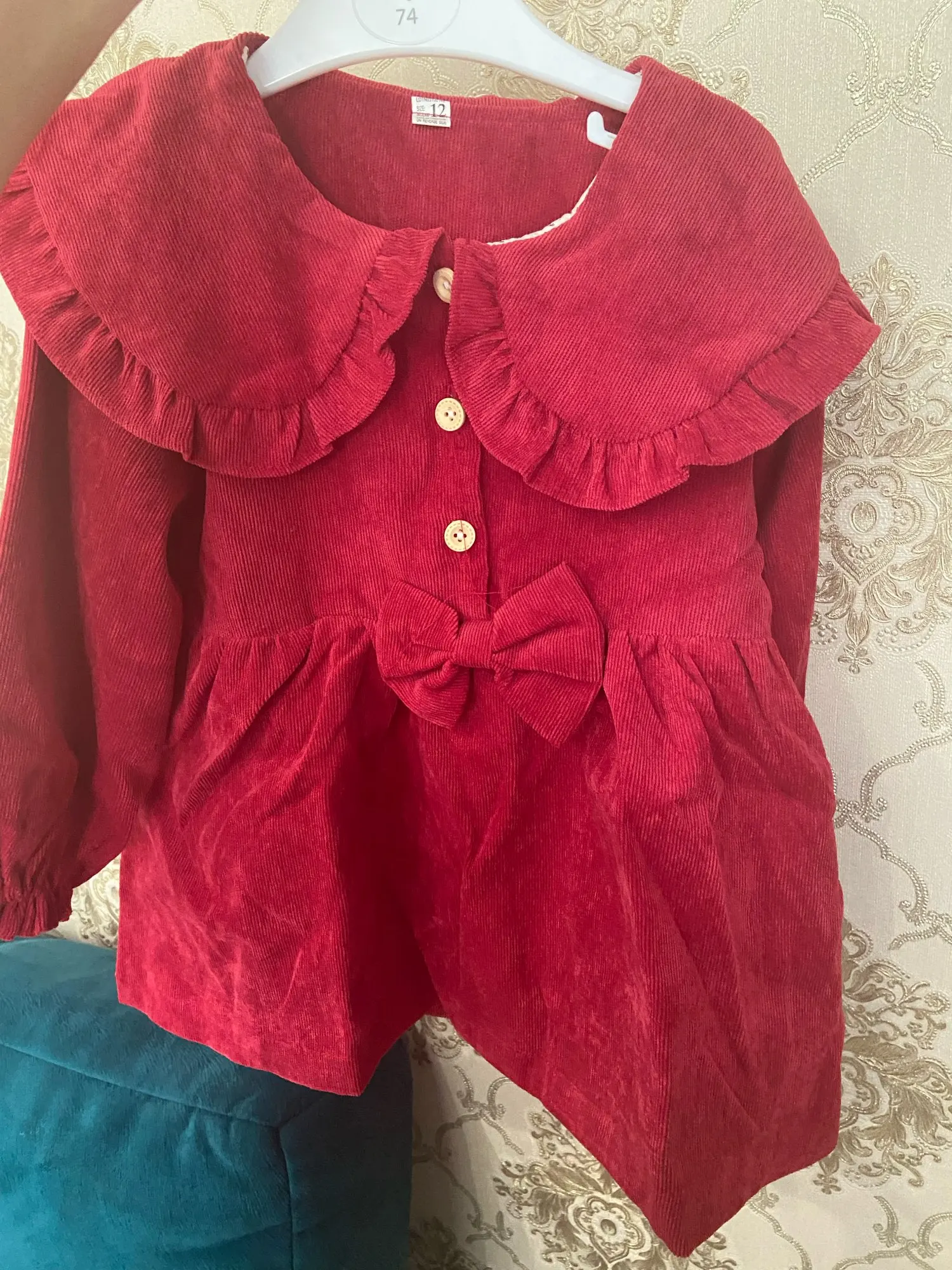 Ожидание/реальность, в данном случае. Во-первых, цвет не такой красивый и не ярко-красный, а больше бледно-бордовый. Везде торчат нитки. Платье очень широкое. Пуговицы вот-вот отвалятся. И что значат эти петлицы рядом с пуговицами, или новая мода пошла, а которой я не слышала? Мое мнение, деньги на ветер.