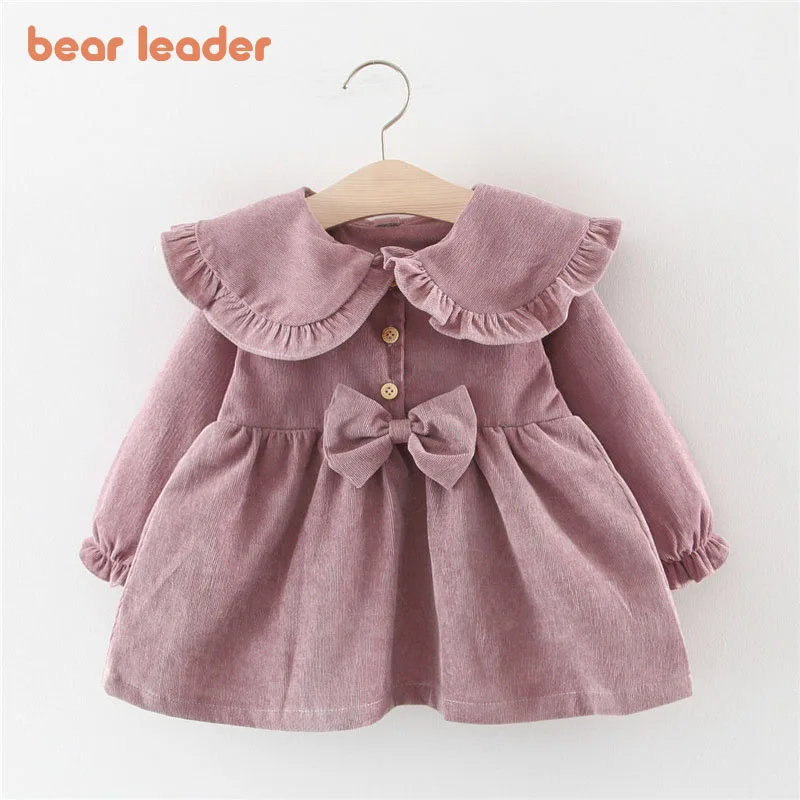 Платье для маленьких девочек Bear Leader, весеннее платье принцессы с длинным рукавом для новорожденных, однотонная детская одежда, красное платье для малышей