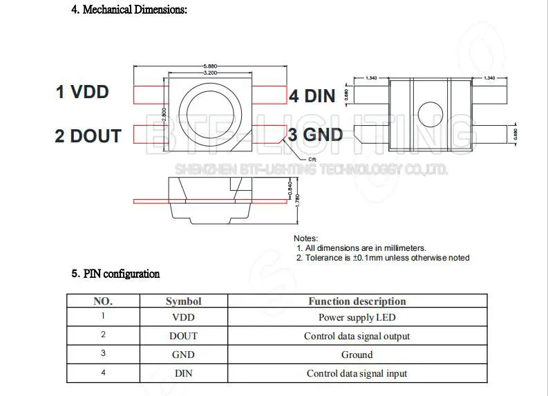 BTF6812RGB MINI-E (аналогично WS2812B) 2000 шт. 3228 SMD пикселей светодиодный чип 0,2 Втшт. индивидуально адресуемый полноцветный DC 5 В
