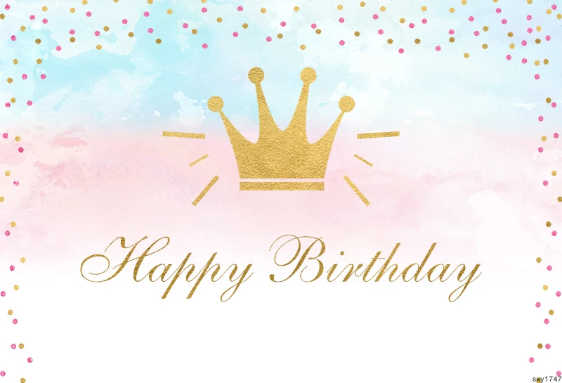 Виниловый фон для фотосъемки с изображением девочки на день рождения, розовый, голубой, полиэстер, Sensfun, Золотая Корона с блестками