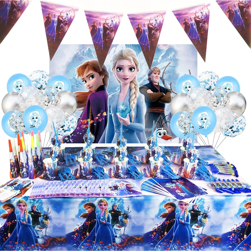 Эльза Анна, замороженные товары для вечеринок, одноразовая посуда, набор на день рождения для девочек, праздвечерние чные чашки принцессы, тарелки, баннер