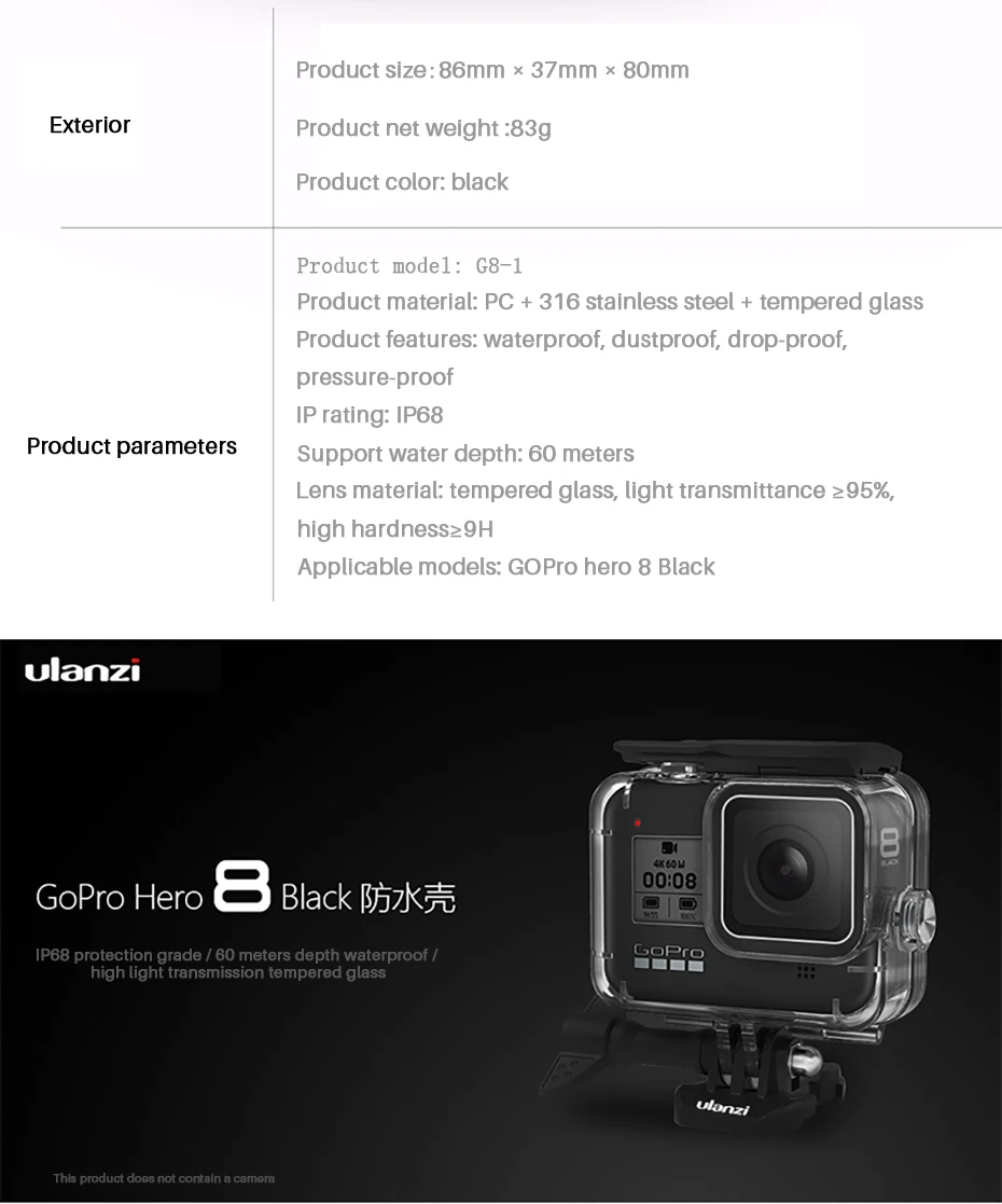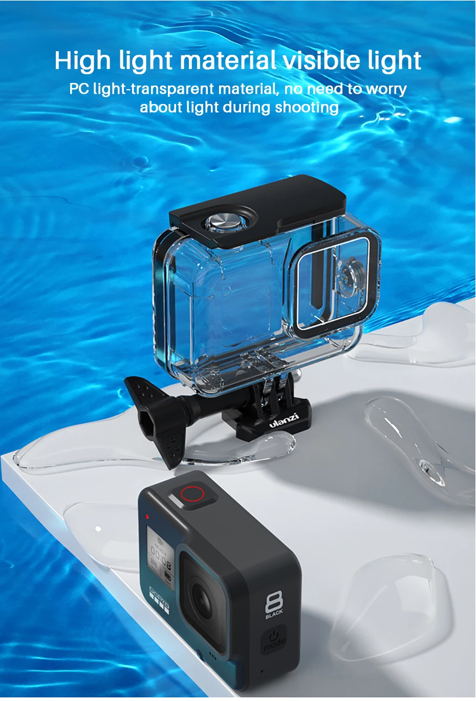 Чехол для дайвинга Ulanzi, водонепроницаемый чехол для погружения на 60 м для Gopro Black 8, оригинальный адаптер для микрофона для Gopro