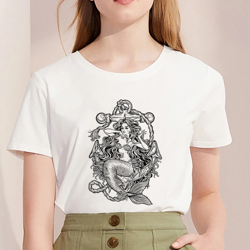 Женская футболка Harajuku, Белая Летняя футболка с морским принтом,...