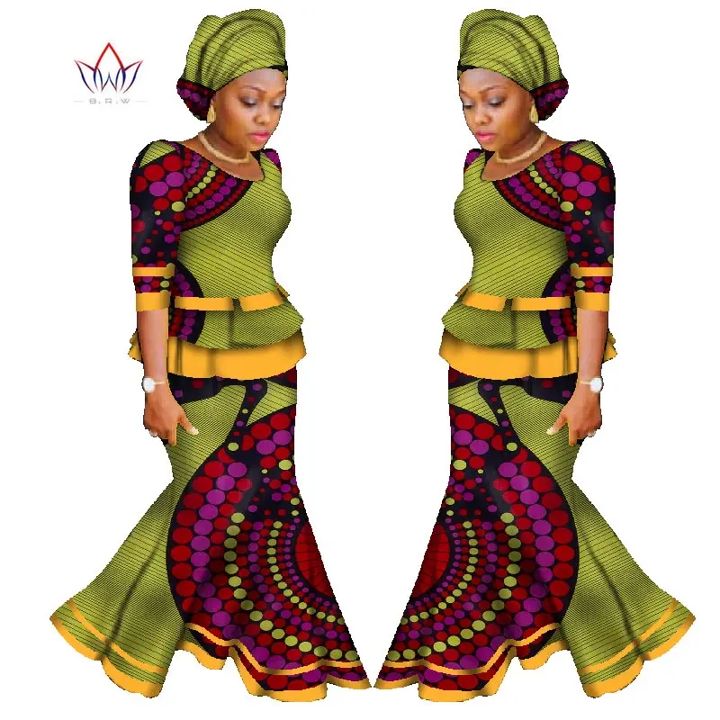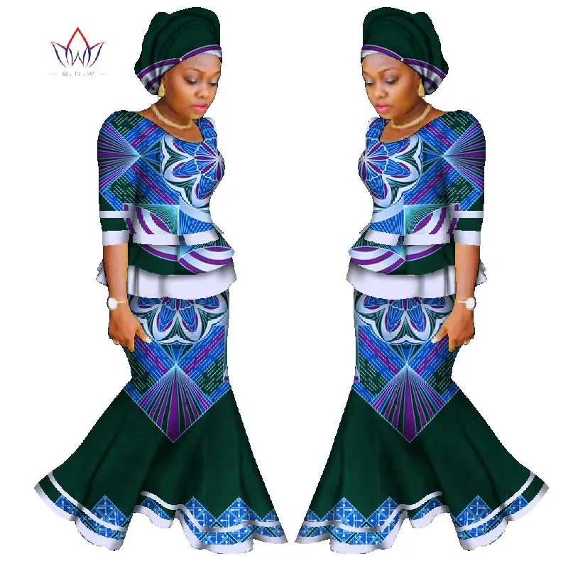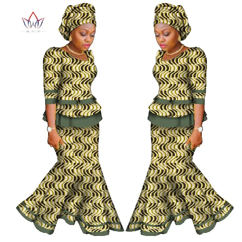 Африканская юбка, комплект для женщин, африканская традиционная юбка и топ Дашики, восковые костюмы из двух частей, африканская одежда WY950