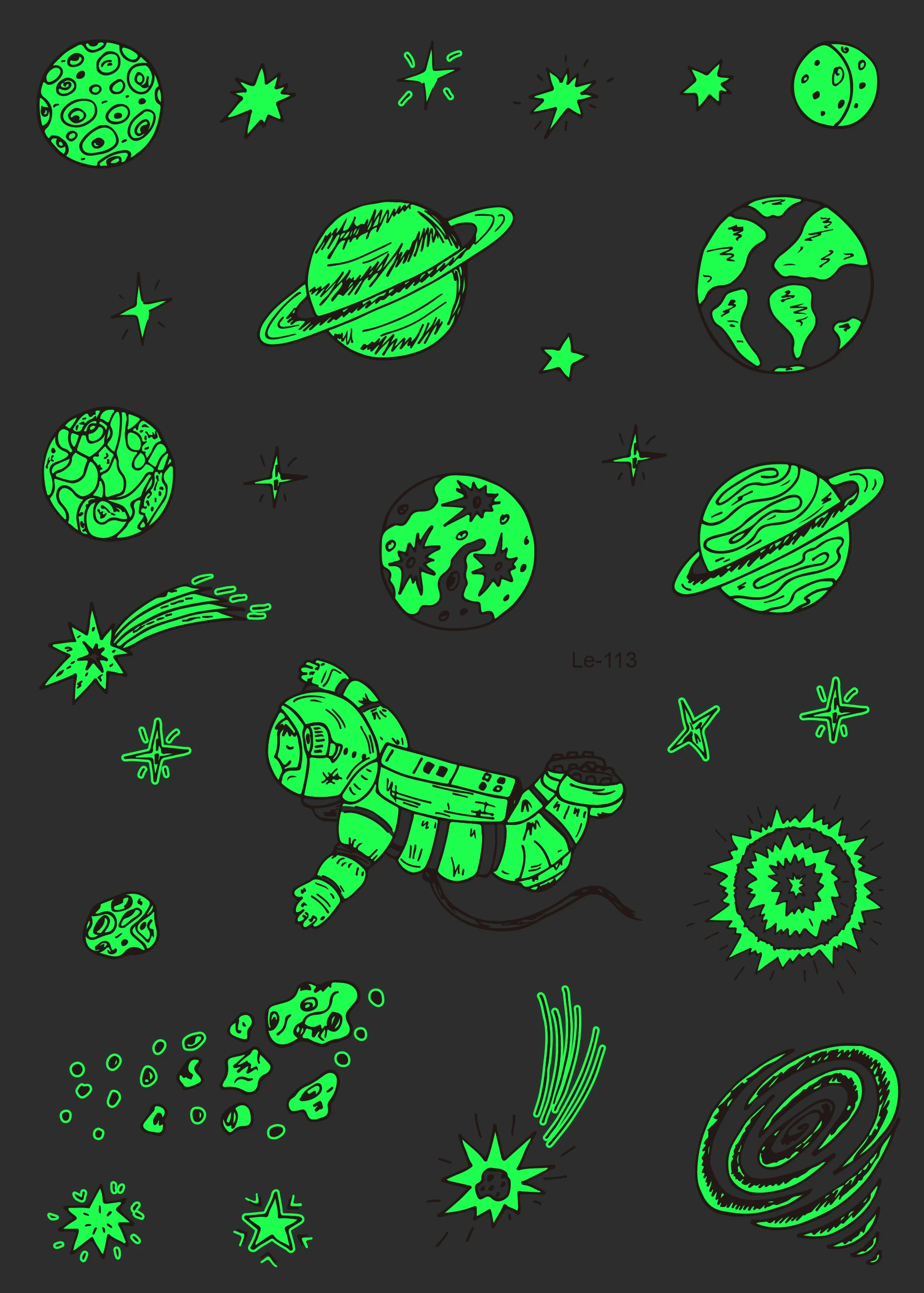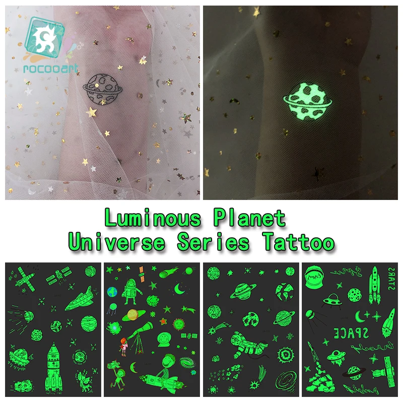 Большие светящиеся Временные татуировки космонавта Вселенная наклейки для детей поддельные татуировки планеты Звезда Луна земля солнце светится в темноте