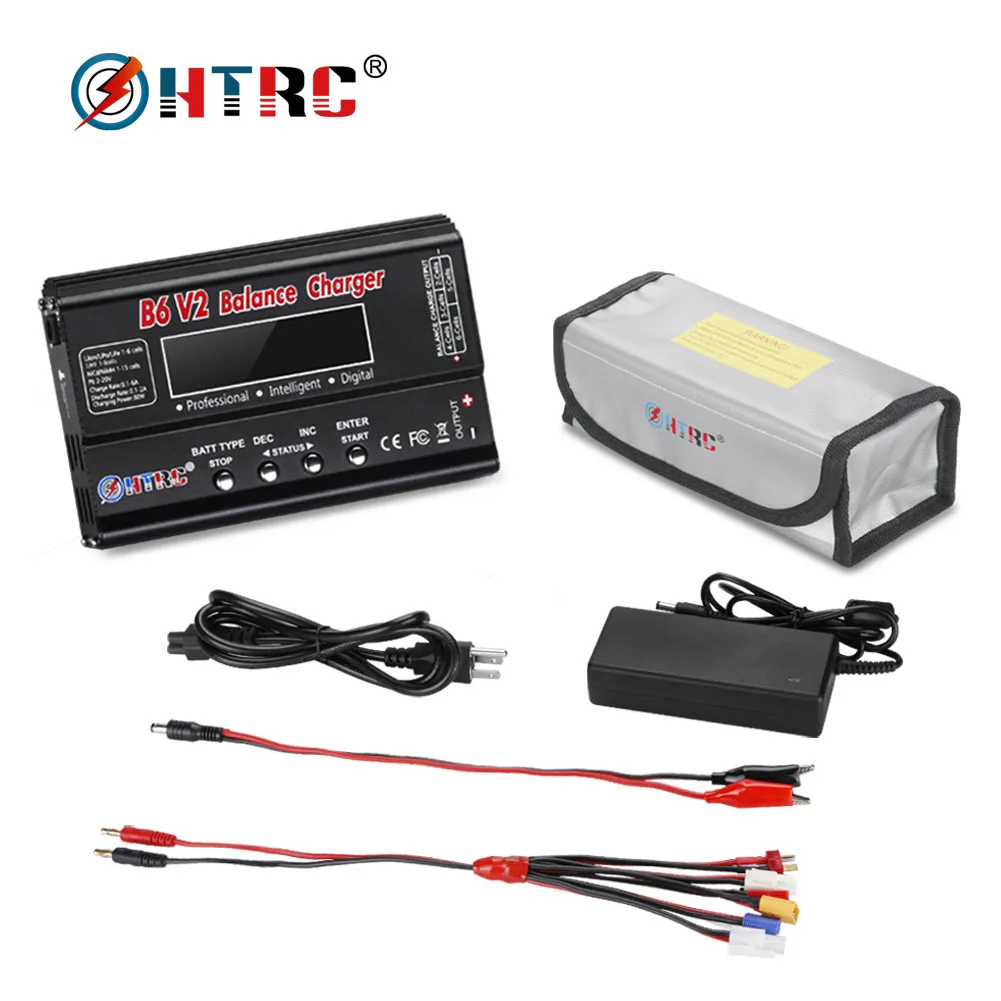 HTRC B6 V2 80 Вт Зарядное устройство 15 в 6A адаптер переменного тока + 8 в 1 Кабели + LiPo безопасный аккумулятор защита взрывозащищенный Мешок Разряда