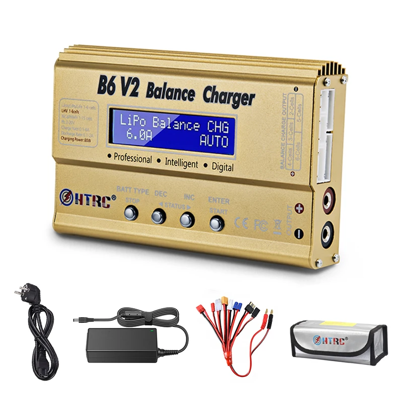 HTRC B6 V2-это обновленная версия imax B6, разработанная HuiTuo HTRC. Это цифровое умное многофункциональное зарядное устройство, которое поддерживает LiPo/LiIon/LiFe/NiCd/NiMH PB батареи, батареи высокой мощности LiHV и умные батареи I,II,III. Максимальная мощность зарядного устройства 80 Вт, разрядная мощность 10 Вт, максимальный зарядный ток 6А, разрядный ток 2A с высокой эффективностью зарядки.