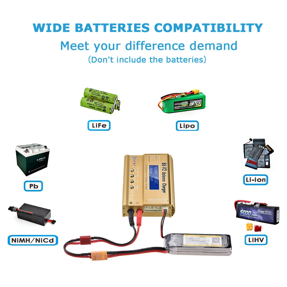 > Многофункциональность: зарядка, балансировка, разрядка, контроль напряжения терминала, проверка емкости литиевой батареи и напряжения, проверка внутреннего сопротивления батареи, хранение данных и загрузка, цифровая мощность.