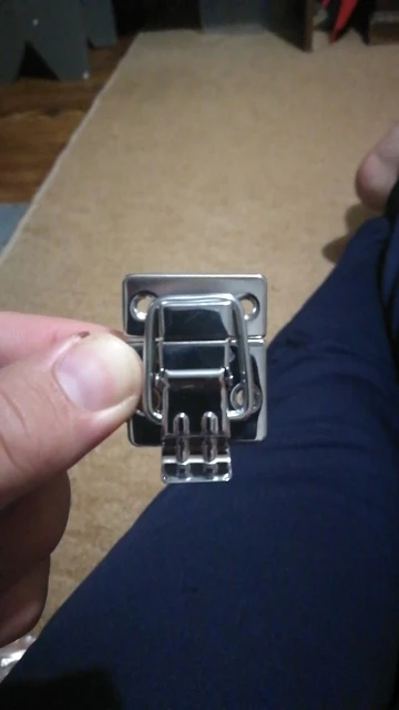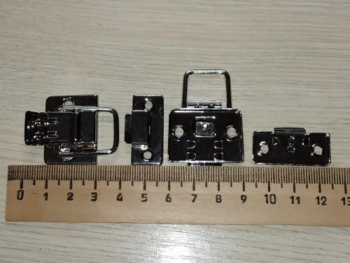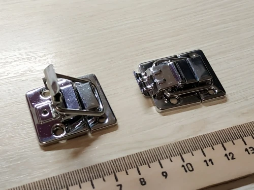 быстрая доставка. застежка как на фото. толщина металла средняя, можно и толще, но тогда дороже. держит хорошо. покупал на кейс шуруповерта, со своей работой полностью справляется! советую