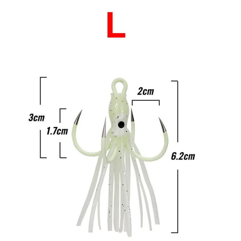 Рыболовные приманки кальмар, светящиеся ночные четырехместные рыбол...