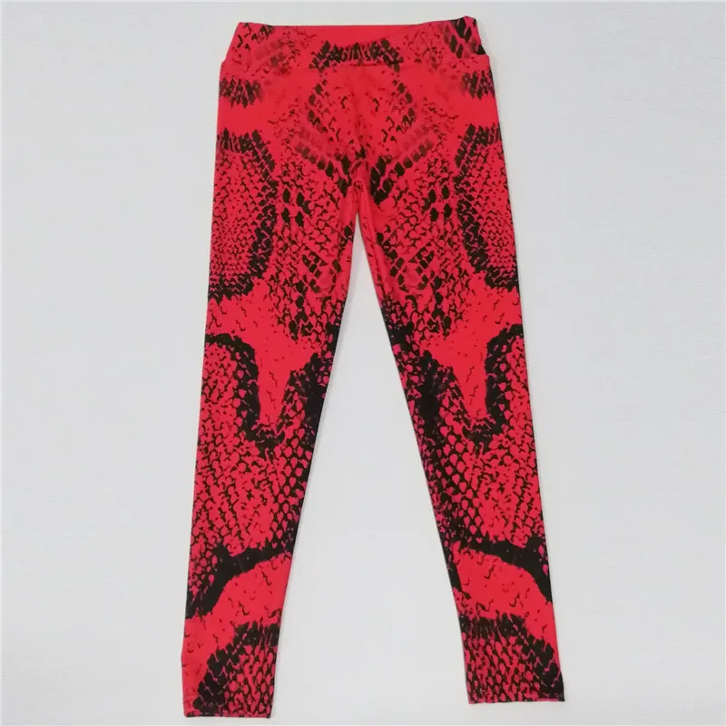 Женские спортивные штаны с принтом змеиной кожи, красные Леггинсы для бега и фитнеса, модные спортивные штаны с эффектом пуш-ап, впитывающие пот, новинка, сексуальные готические женские штаны