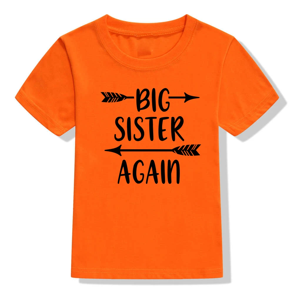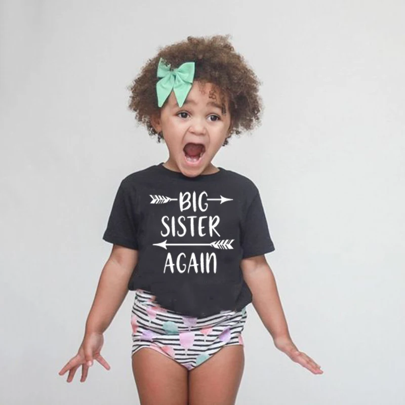 Детская футболка для девочек с надписью Big Sister Again, забавная футболка с короткими рукавами для маленьких девочек, Повседневные детские футболки