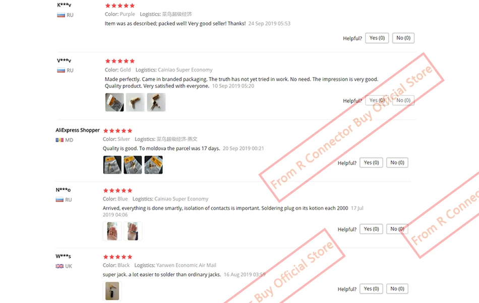 Дошли за 11 дней до Москвы (продавец отправил Cainiao Super Economy, но отслеживались на всем пути, так как попали в сборную посылку). Все штекеры и втулки к ним лежали в одном плотном фирменном пакетике с зип-замком, а затем в бумажном почтовом конверте с пупырчатым слоем. Внешне качественные, сделаны аккуратно. Благодаря сменным втулкам можно надежно закреплять провода разной толщины.