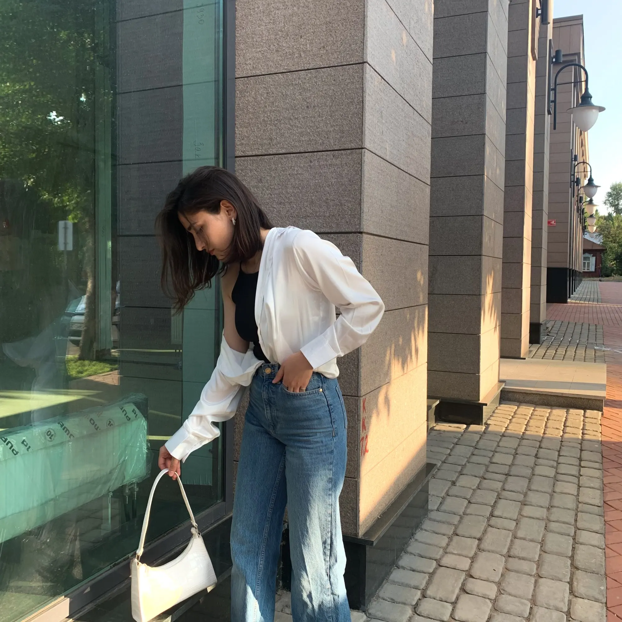 Осенняя модная атласная шелковая рубашка на пуговицах, Весенняя винтажная блузка для женщин, белая женская Свободная уличная рубашка с длинными рукавами-