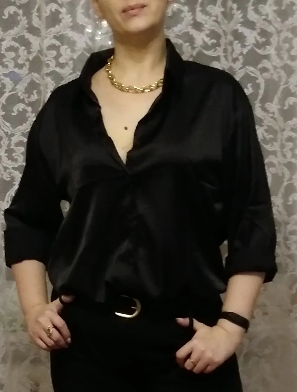 Рубашка Женская атласная, шелковая, с длинным рукавом, осенняя, 11355