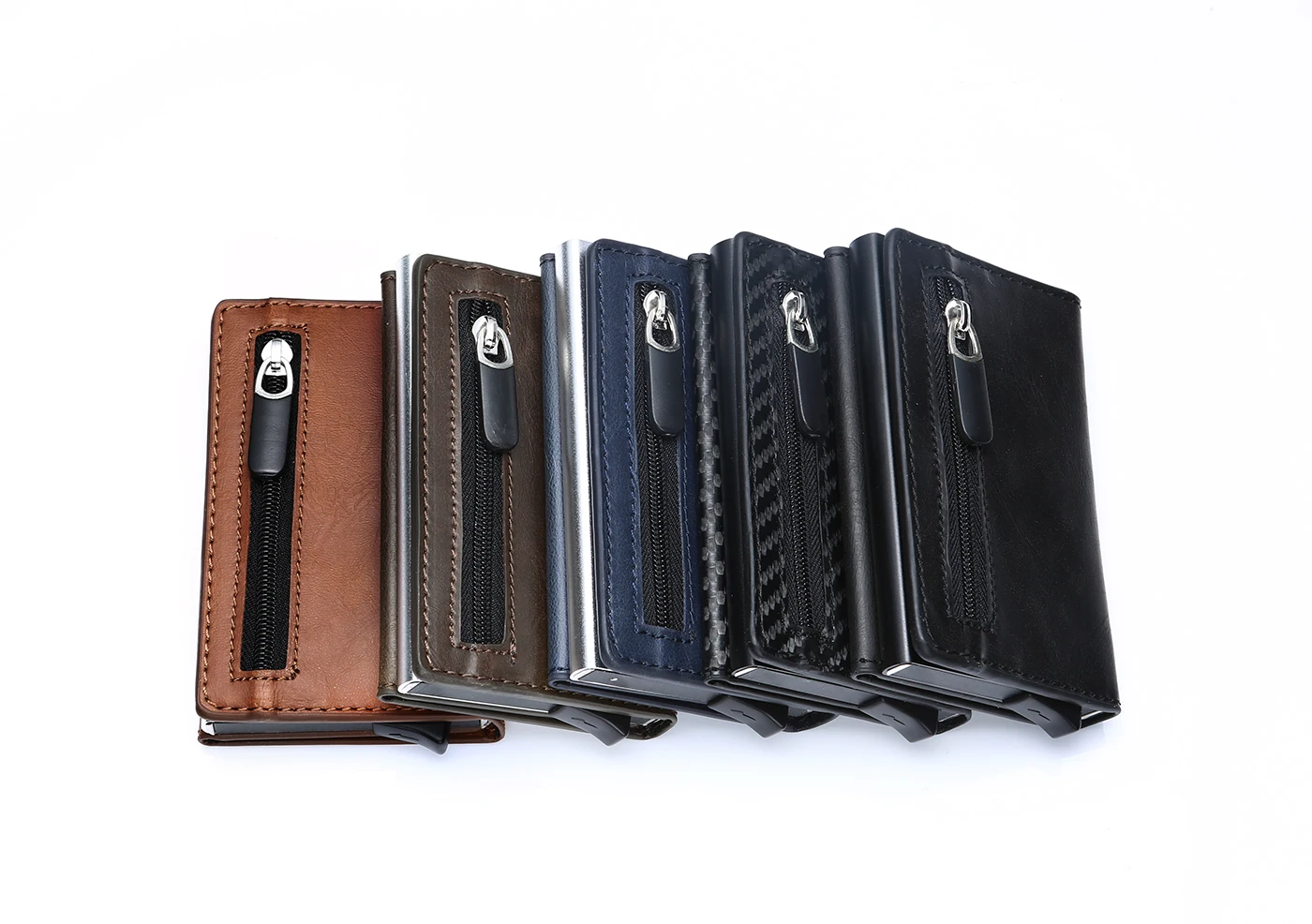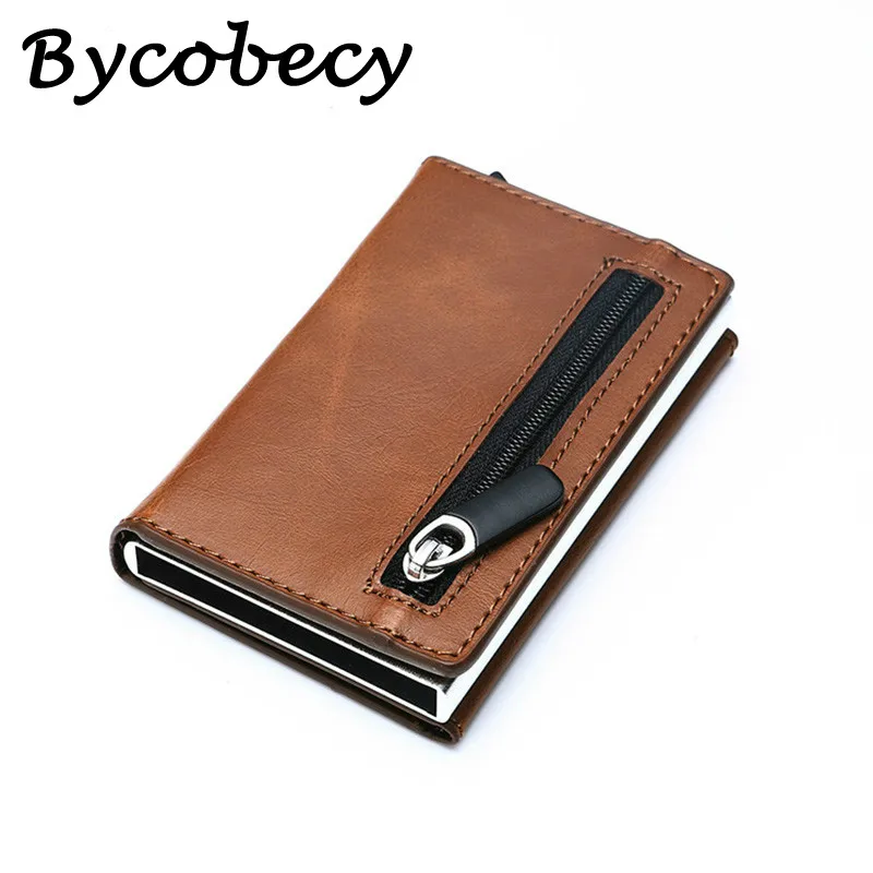 Умный кошелек Bycobecy Rfid, кредитный держатель для карт, металлические тонкие мужские бумажники, секретный всплывающий минималистичный кошелек, маленький кошелек для монет