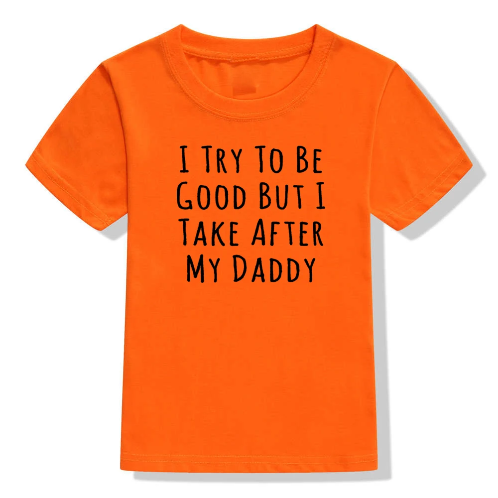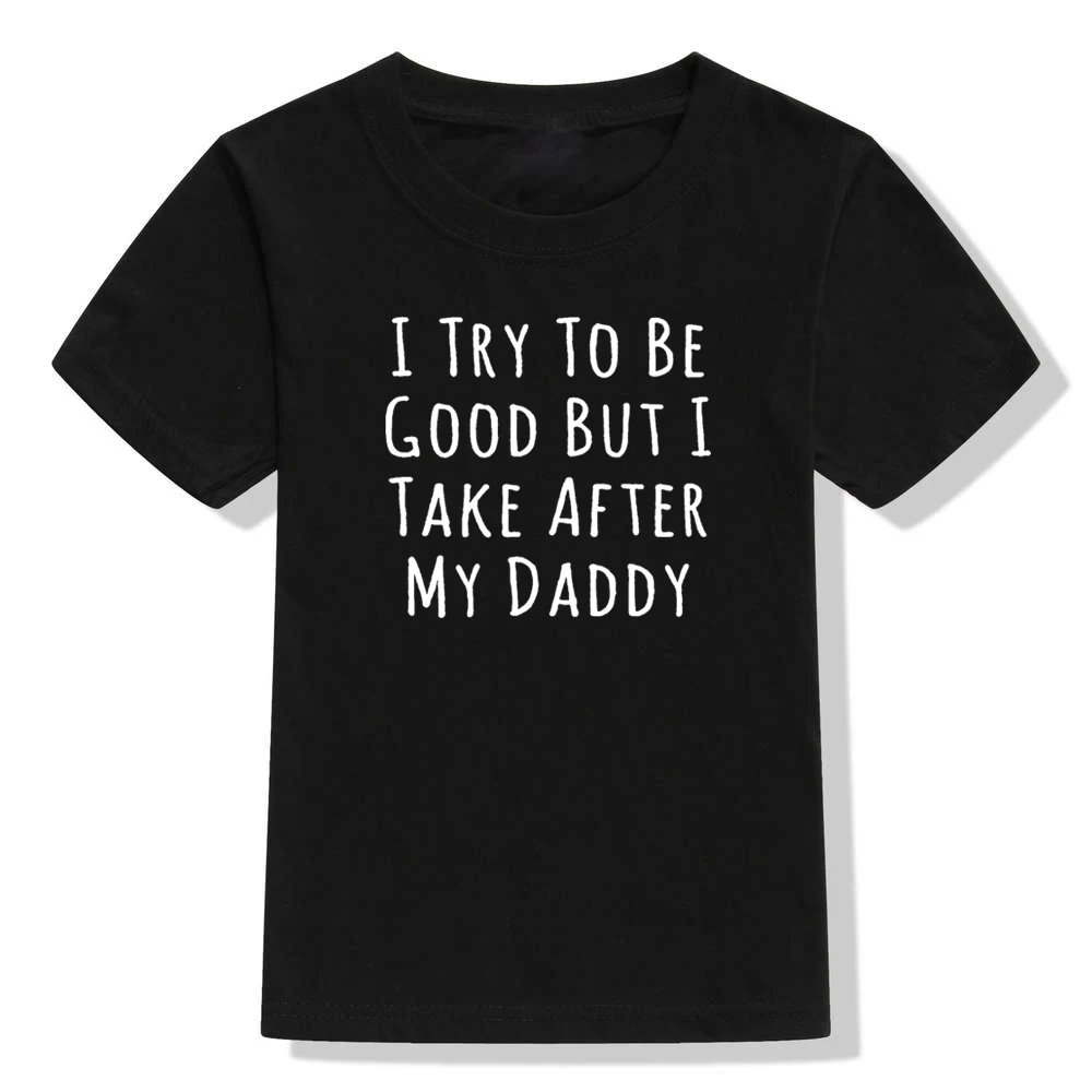 Летняя Забавная детская футболка, я стараюсь быть хорошим, но я возьму за папой письма, печатная детская одежда, повседневные футболки для маленьких мальчиков и девочек