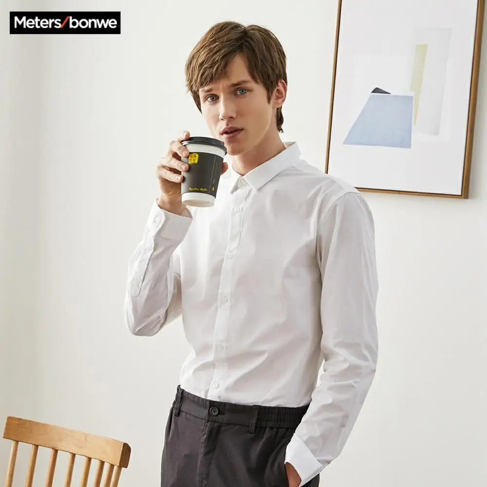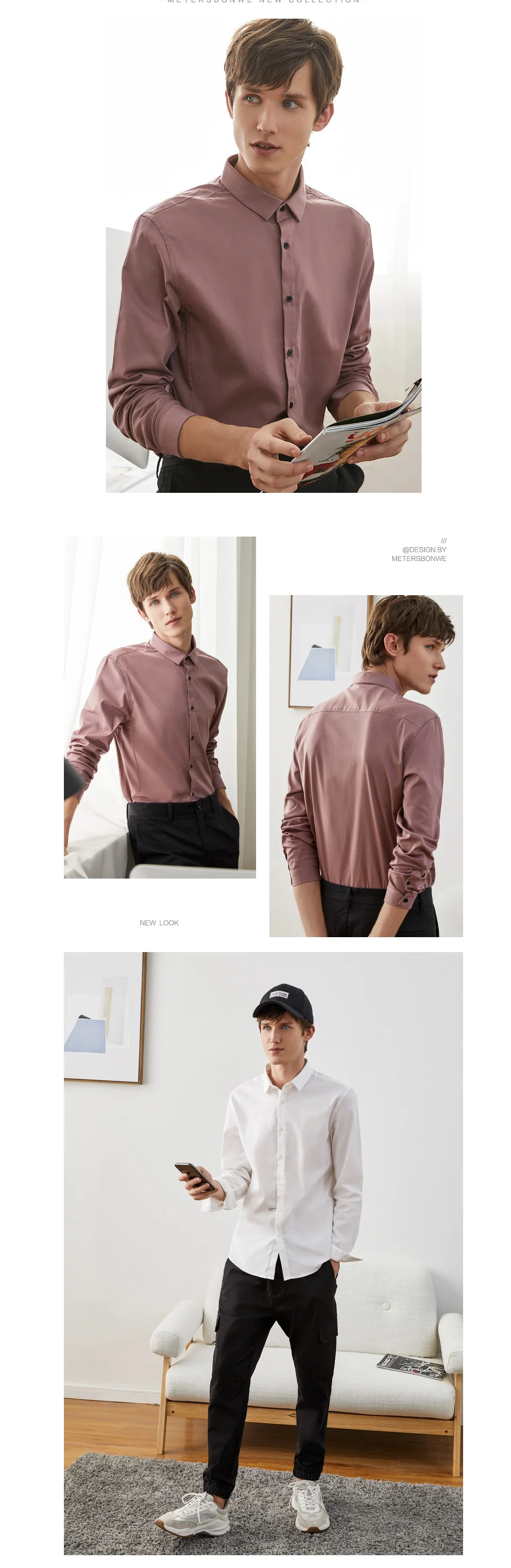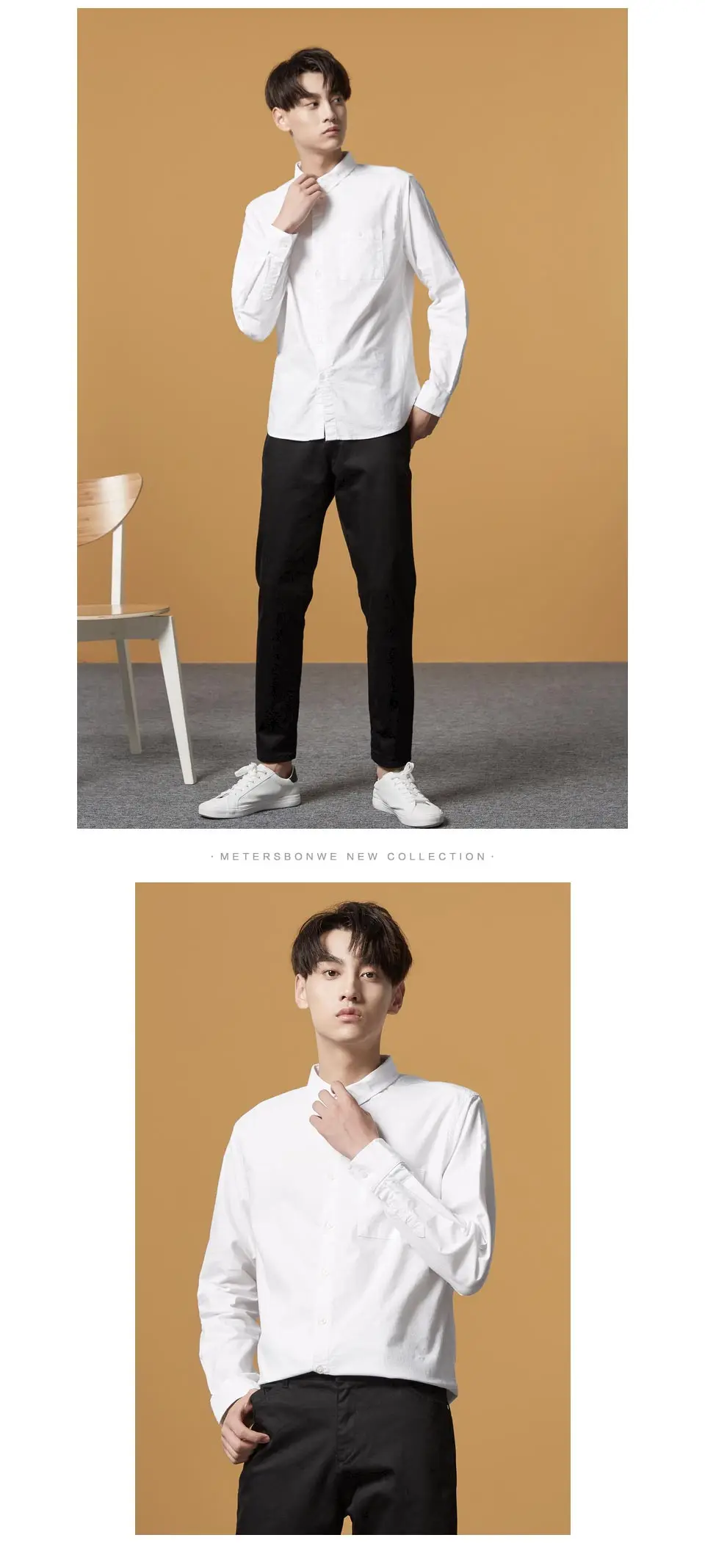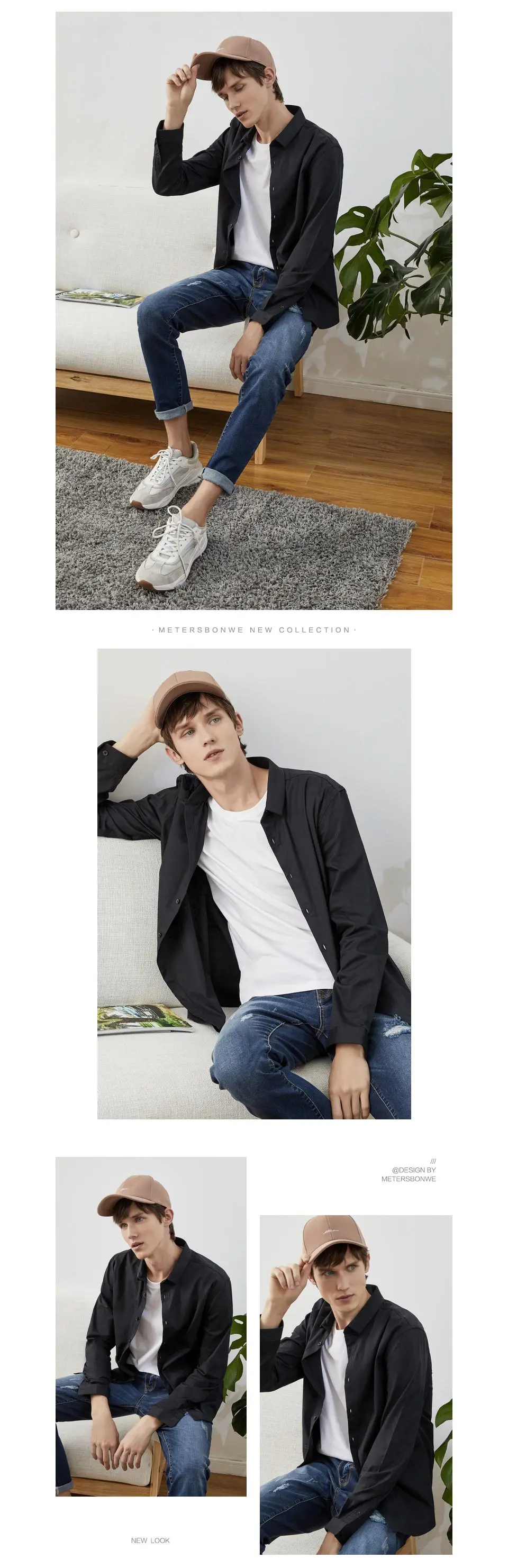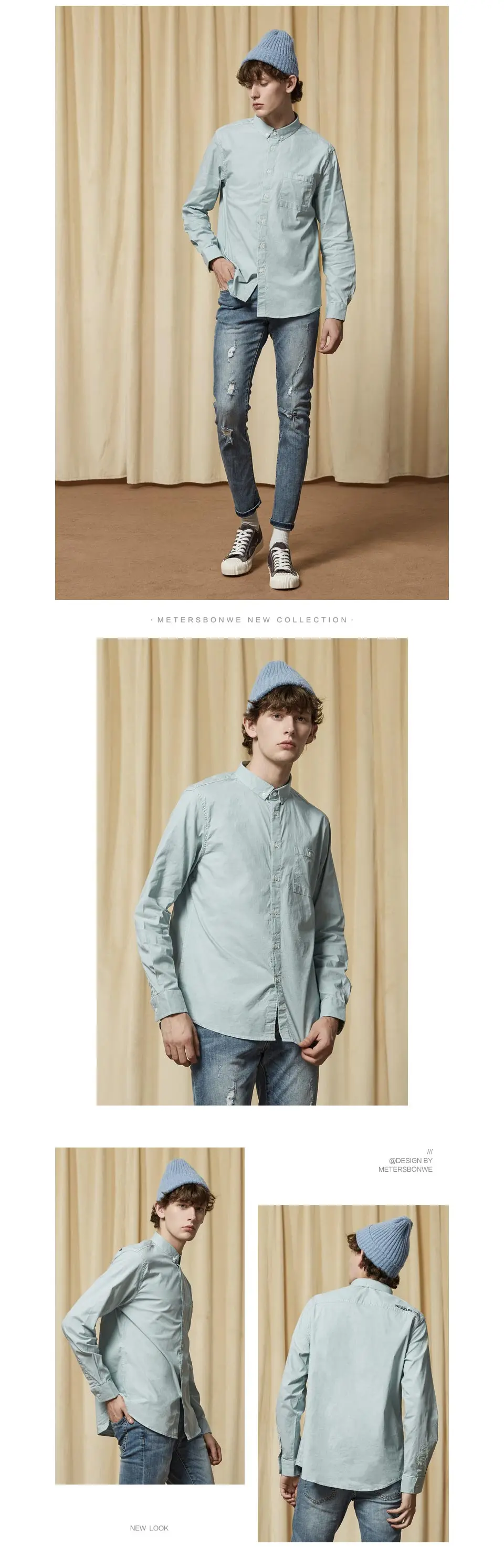 Metersbonwe Брендовые мужские Смарт повседневные рубашки весна осень мужские тонкие рубашки с длинным рукавом обычные хлопковые мужские базовые Топы