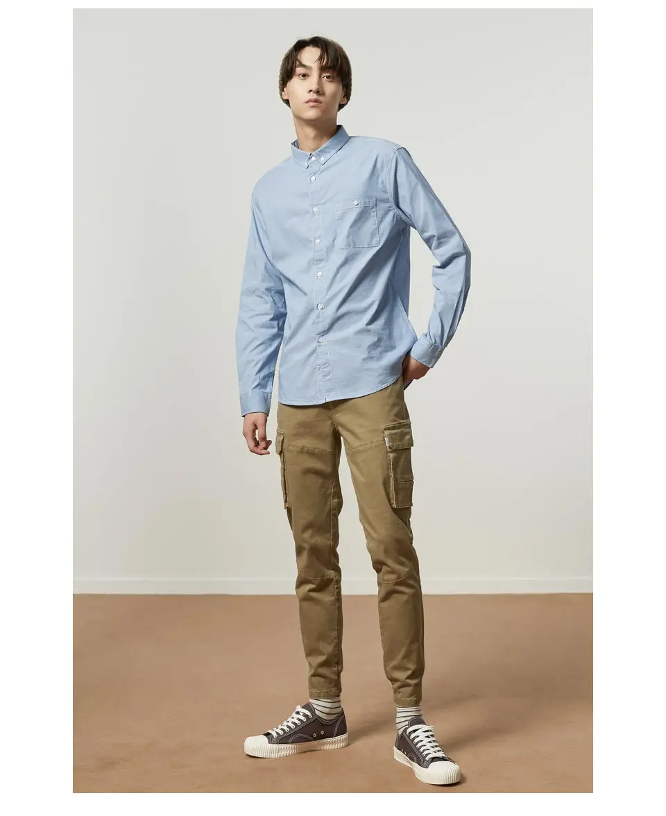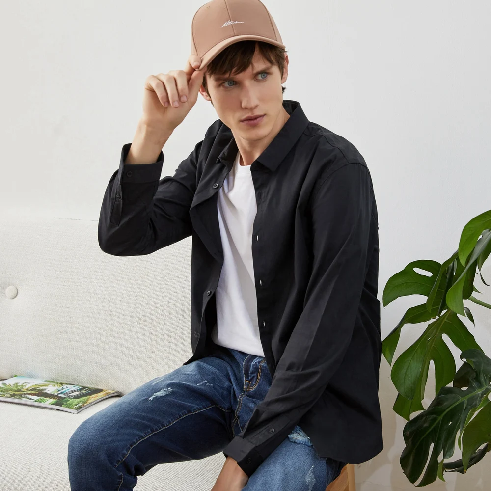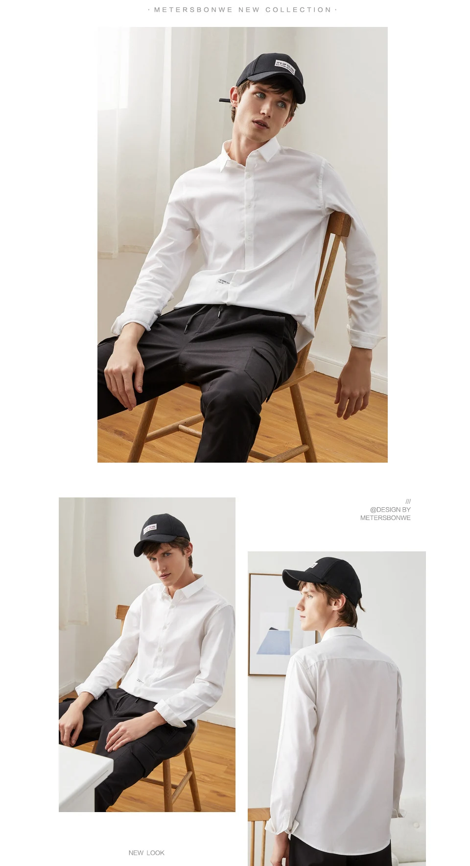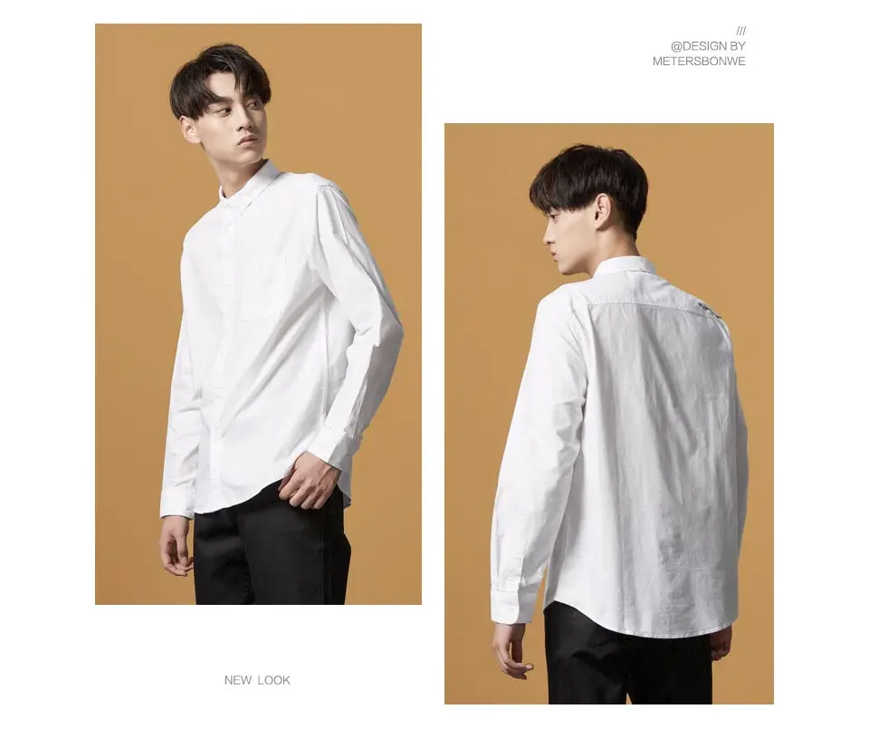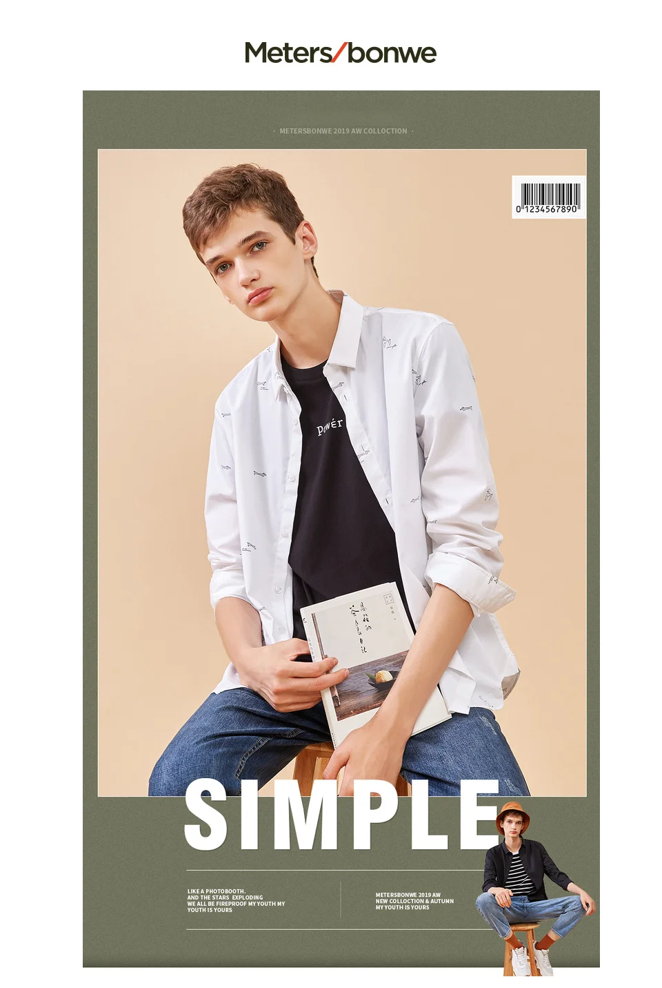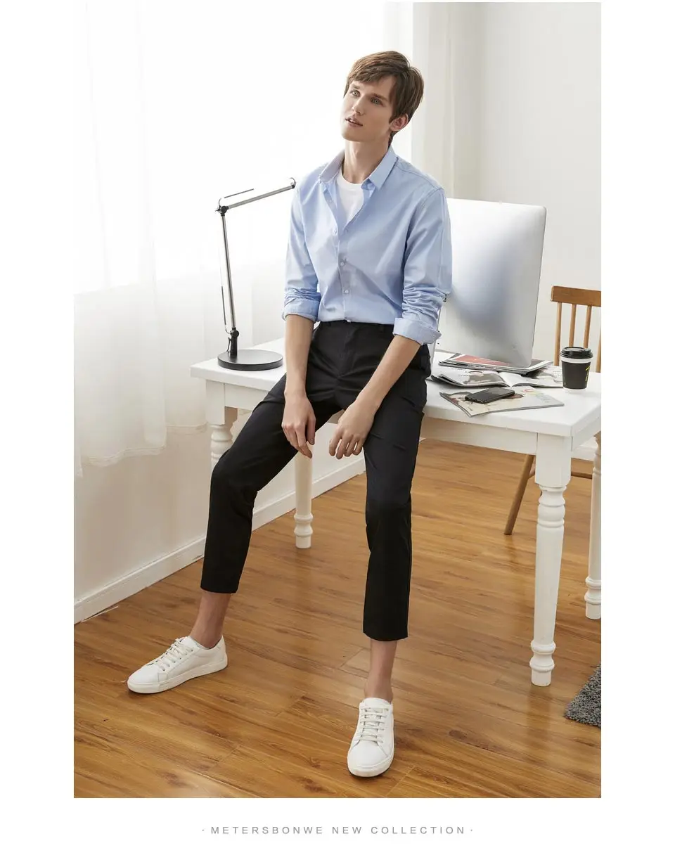 Metersbonwe Брендовые мужские Смарт повседневные рубашки весна осень мужские тонкие рубашки с длинным рукавом обычные хлопковые мужские базовые Топы