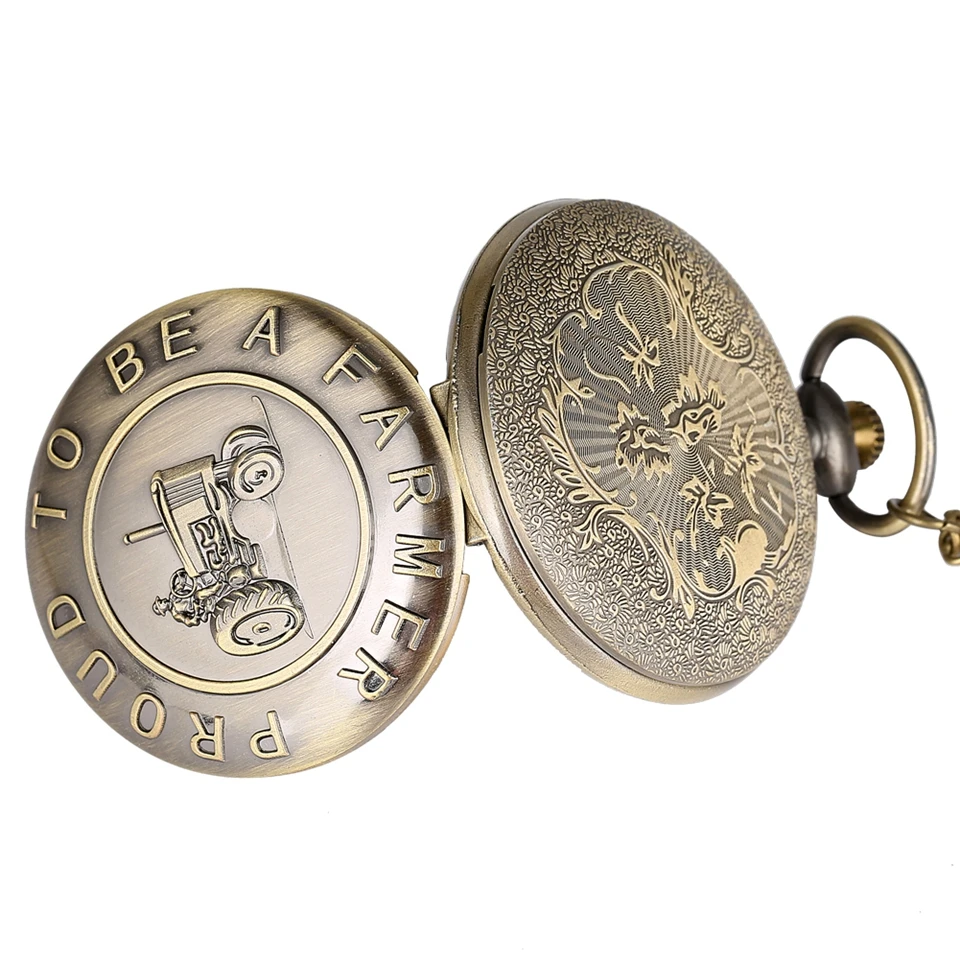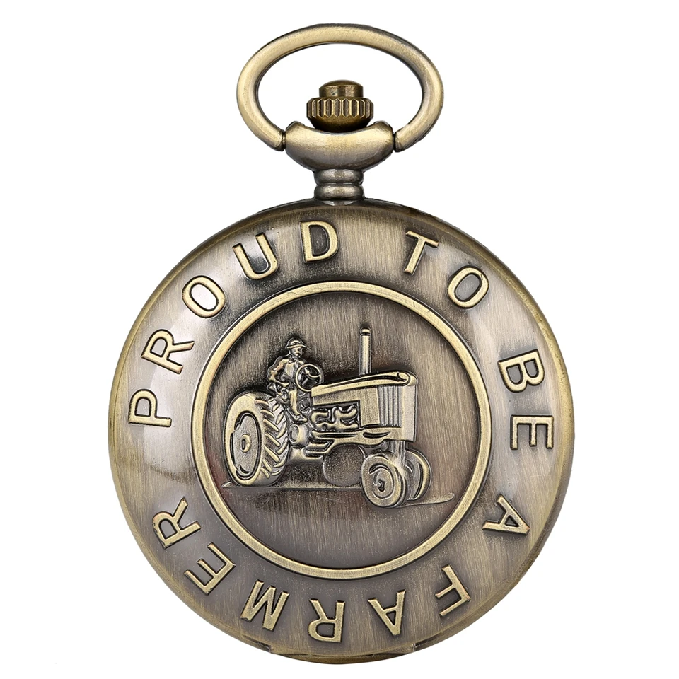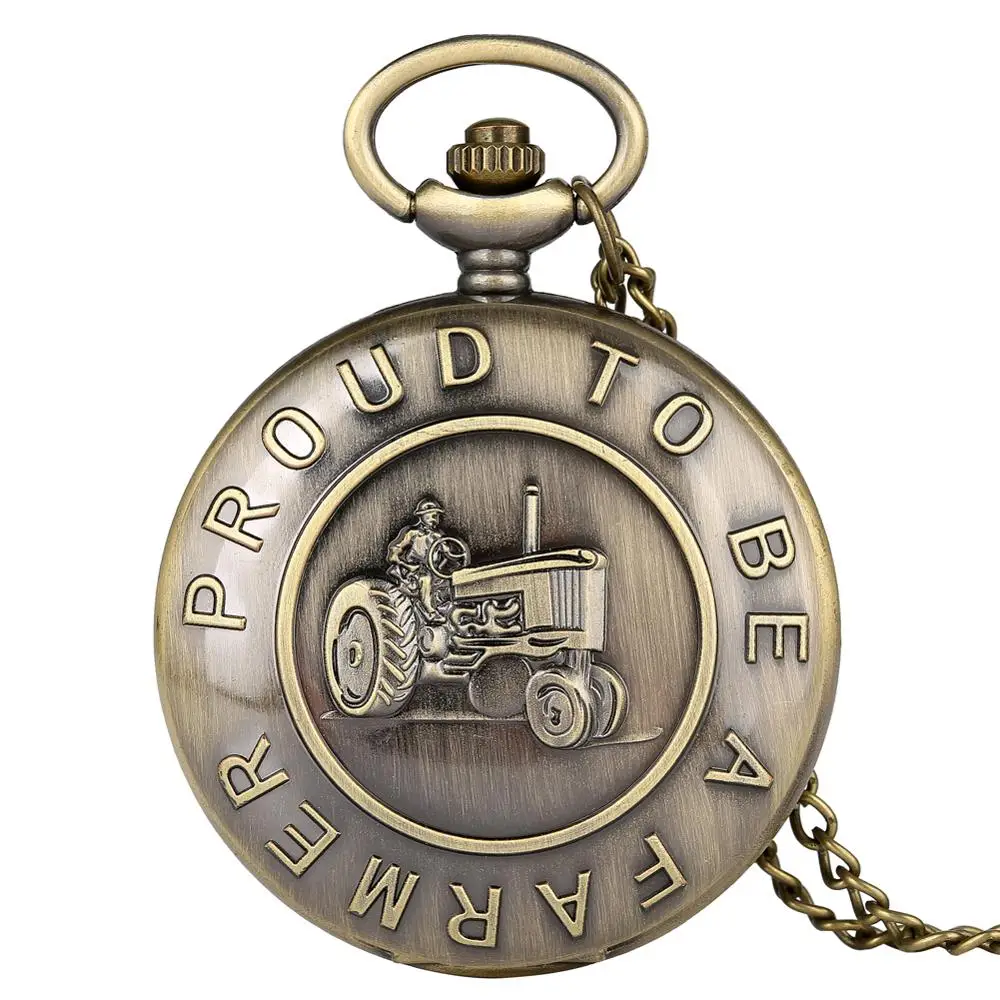 Часы гордиться фермером в стиле ретро, бронзовые кварцевые карманные часы с подвеской в стиле стимпанк, на цепочке, для мужчин и женщин